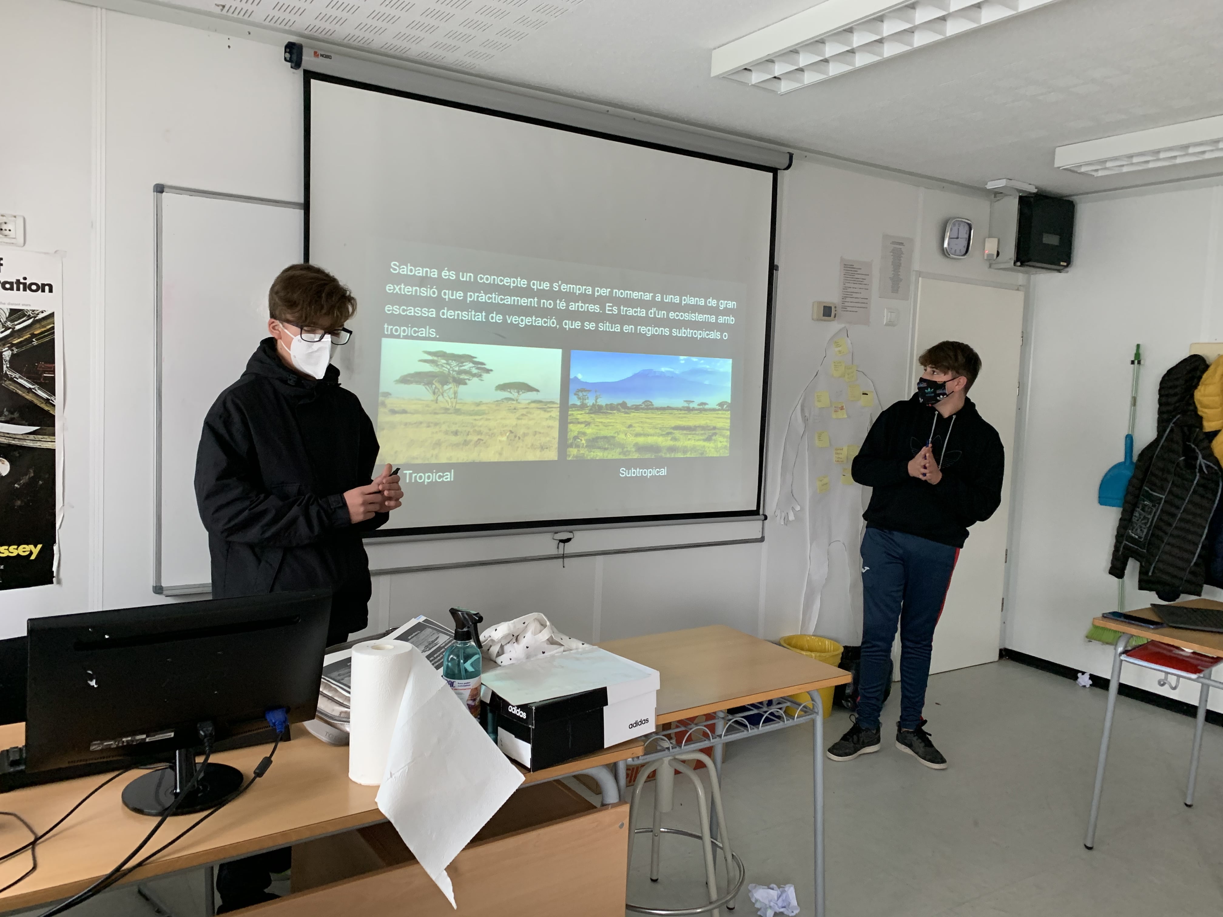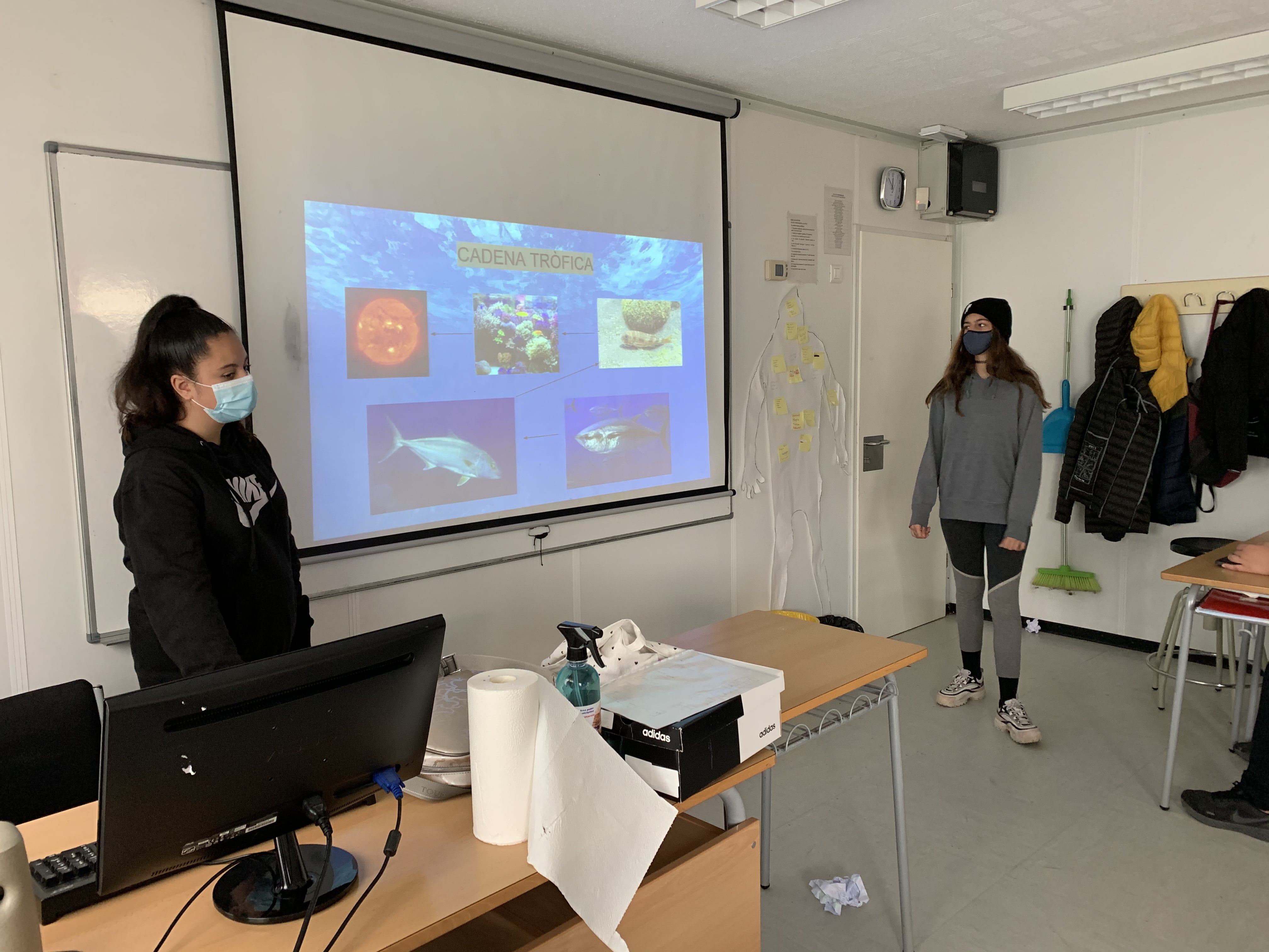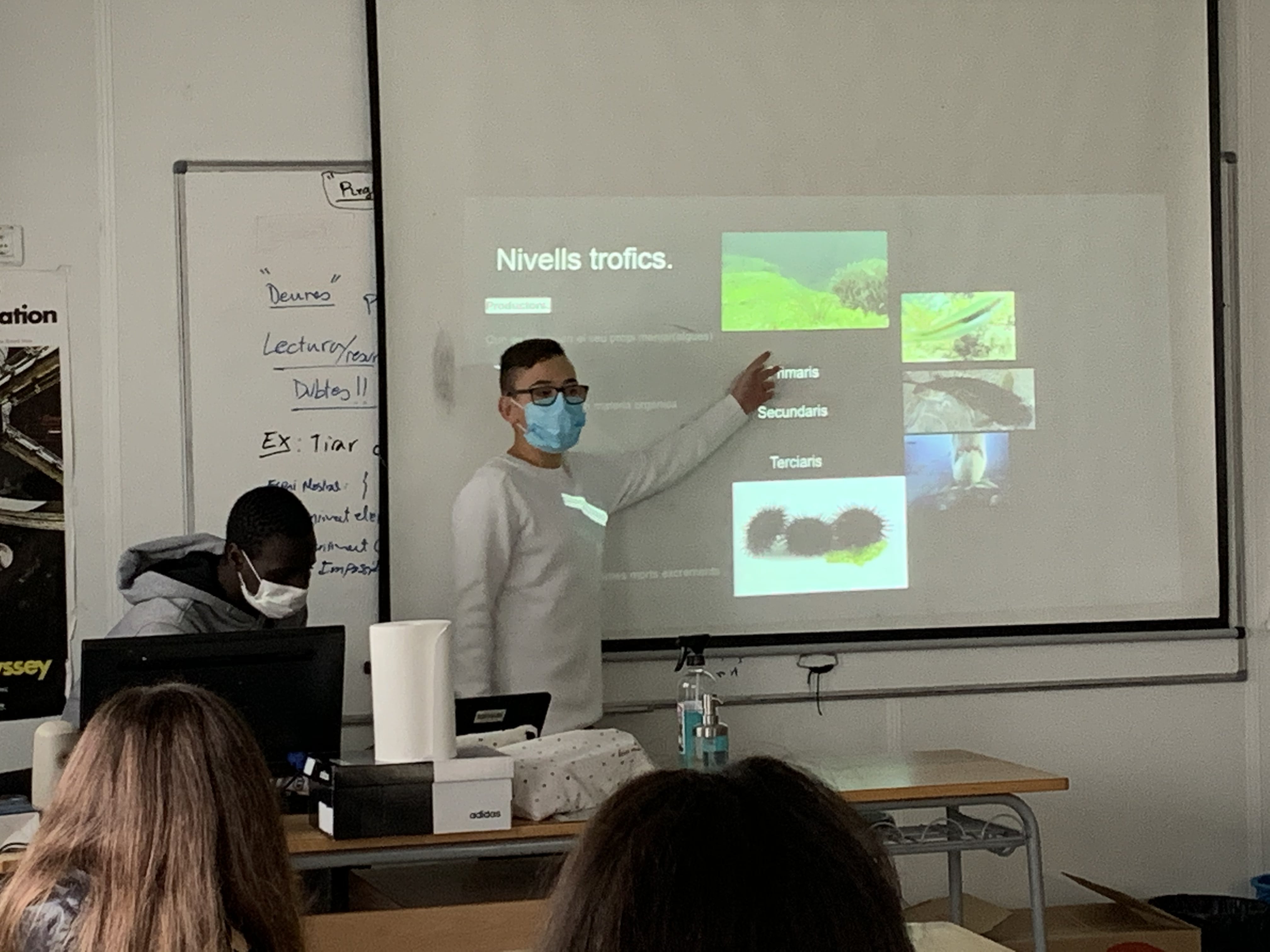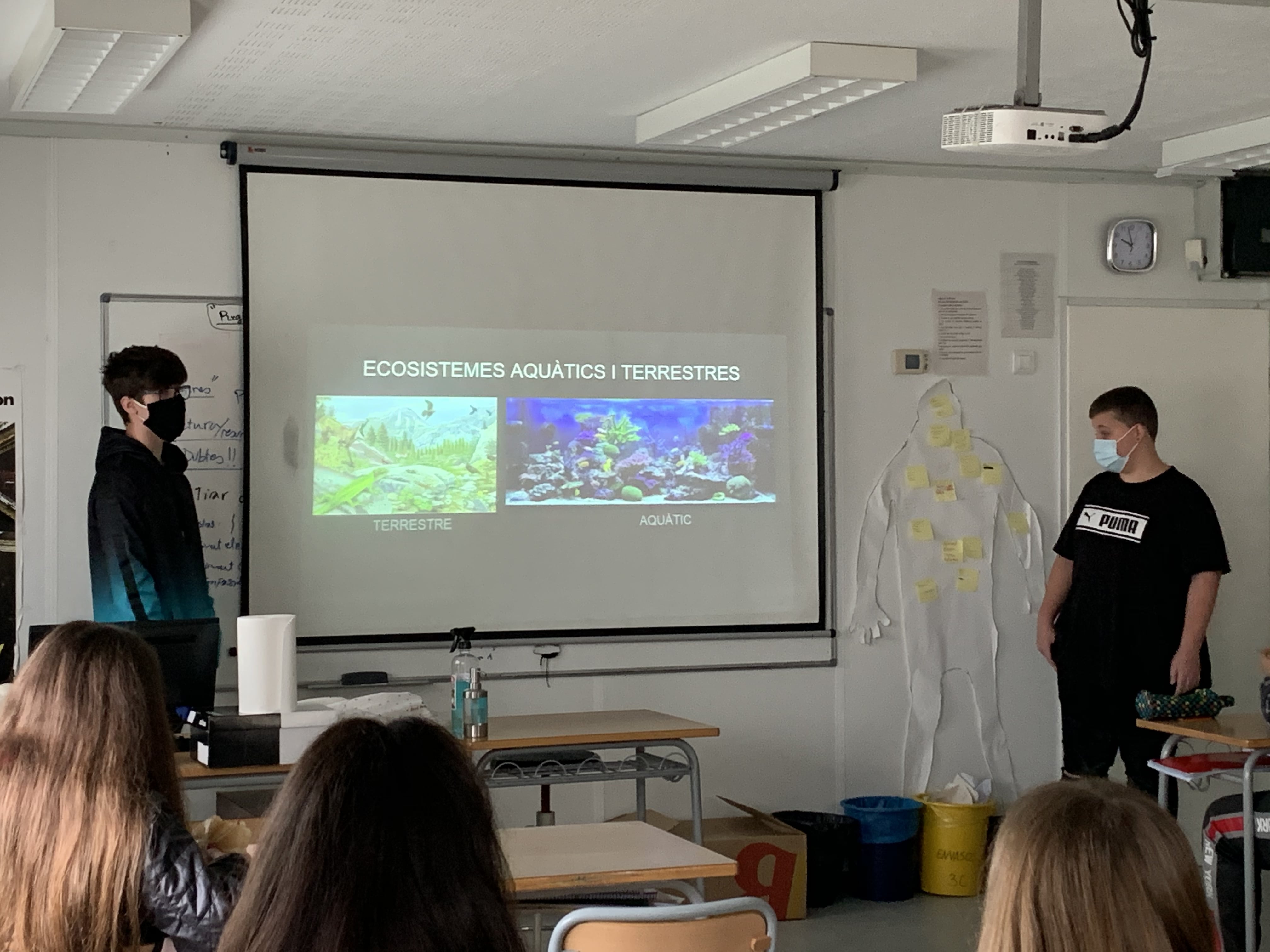 Durant la presentació, ens han explicat quins són els elements que formen un ecosistema i els han relacionat amb l’ecosistema d’estudi, així com també han representat una cadena tròfica. A més, han analitzat algunes causes i conseqüències de la destrucció dels ecosistemes, exposant algunes solucions davant d’aquests impactes o amenaces.