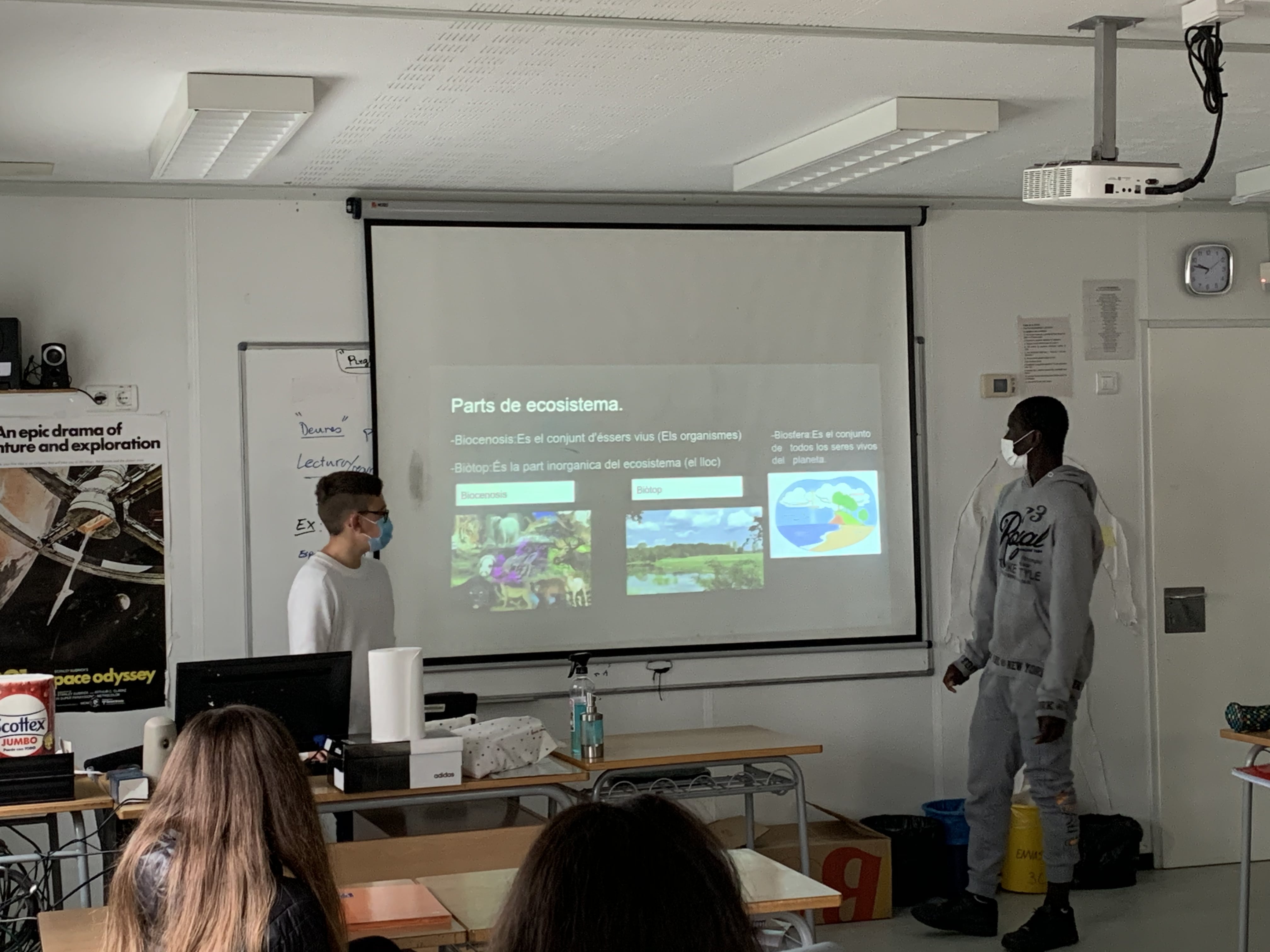 Durant la presentació, ens han explicat quins són els elements que formen un ecosistema i els han relacionat amb l’ecosistema d’estudi, així com també han representat una cadena tròfica. A més, han analitzat algunes causes i conseqüències de la destrucció dels ecosistemes, exposant algunes solucions davant d’aquests impactes o amenaces.