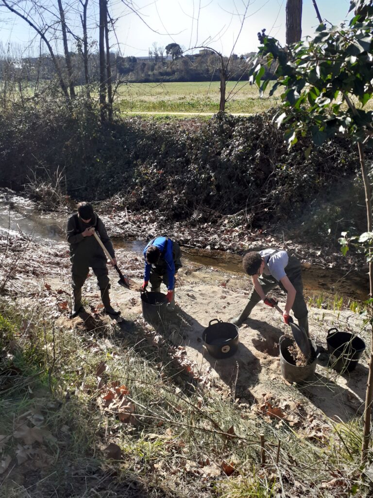 Un cop tingut clar tota aquesta informació, la segona fase l’han feta a la mateixa riera. El primer que han fet ha estat identificar arbres autòctons per tallar-ne les gemmes, per, posteriorment, plantar-los i així intentar afavorir la seva preservació i extensió. Per últim, han fet uns forats en una zona de sorral dins la riera, per fer sortir l’aigua de sota i crear unes basses per amfibis. Un espai segur on puguin fer les seves postes sense que corrin el perill de què els peixos es mengin els seus ous i així afavorir la seva reproducció.