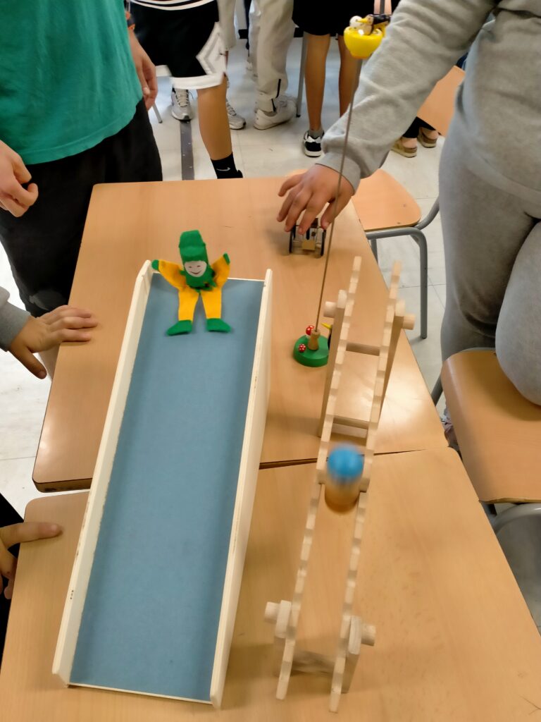 Aquesta trobada tan vivencial va ser enriquida amb la presència de la Clara Carbonell, de la botiga La Carpa de Girona, que va portar joguines amb diferents tipus de palanques, politges i mecanismes per tal d’inspirar l’alumnat en la creació d’aquests enginys.