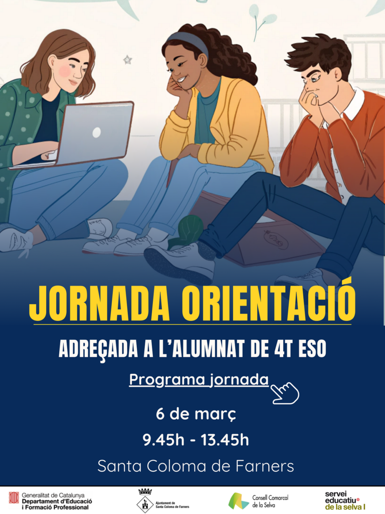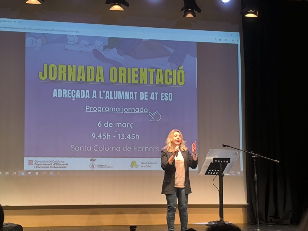 Ahir, 6 de març, els alumnes de 4t d’ESO que tenen previst fer estudis de Formació Professional van assistir a una Jornada d’orientació matinal a Santa Coloma de Farners, junt amb l’alumnat de la resta d’instituts de la zona. Es van dur a terme diverses xerrades, en tres franges  horàries, d’una durada d’uns trenta minuts cada una. Els joves van poder saber més sobre els llocs on es poden cursar els estudis i les seves sortides professionals. L’acte va estar molt ben organitzat, ja que cada noi i noia tenia una targeta amb l’itinerari de xerrades que havia triat i un llibret amb les fitxes de totes les xerrades.