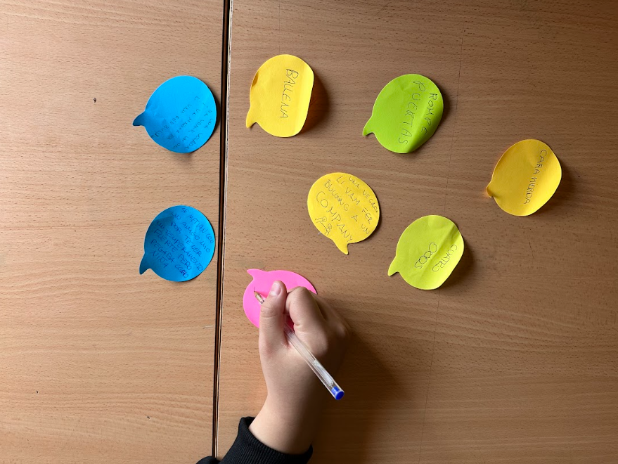 Després de l’exposició oral, les preguntes i el diàleg amb els grups, es va realitzar una dinàmica participativa en què l’alumnat havia d’escriure de manera anònima insults, faltes de respecte o comentaris feridors que haguessin rebut o escoltat en algun moment de la seva vida. La retroacció de tot plegat va ser molt positiva i enriquidora tant per a l’alumnat com per al professorat. A partir dels post-its recollits, es crearà un pòster que es penjarà a l’institut com a recordatori col·lectiu. Perquè les paraules poden fer molt de mal, però també poden servir per prendre consciència, actuar i transformar la realitat. L’assetjament no és un problema individual, sinó col·lectiu, i només el podrem erradicar si ens impliquem totes i tots com a comunitat educativa.