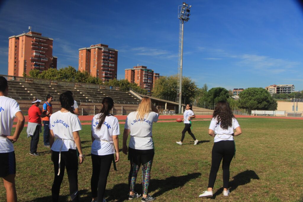 El passat 24 d’octubre del 2017 els alumnes de 1r de batxillerat van anar a les Pistes de Can Jofresa per gaudir del Futbol-Flag. Aquesta és una modalitat del Futbol Americà que es juga sense proteccions i sense placatges. En comptes de placar, el jugador ha d’arrencar un petit banderí o bandera a manera de cinturó que porta el rival.