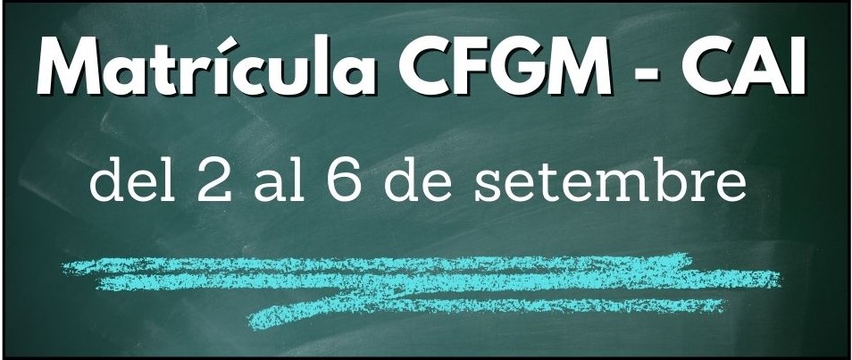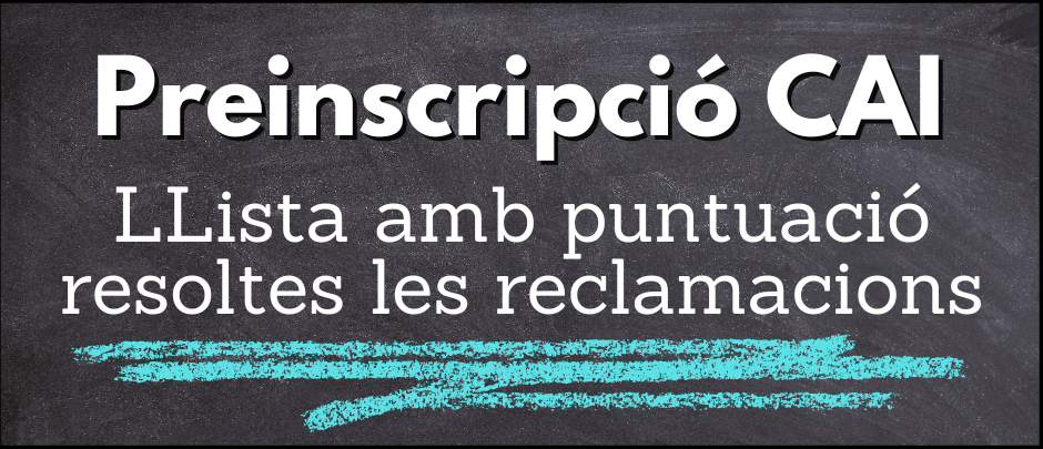 Del 2 al 6 de setembre haureu de formalitzar la matrícula a CAI aquells alumnes que al llistat d’assignacions tingueu assignat el nostre centre.