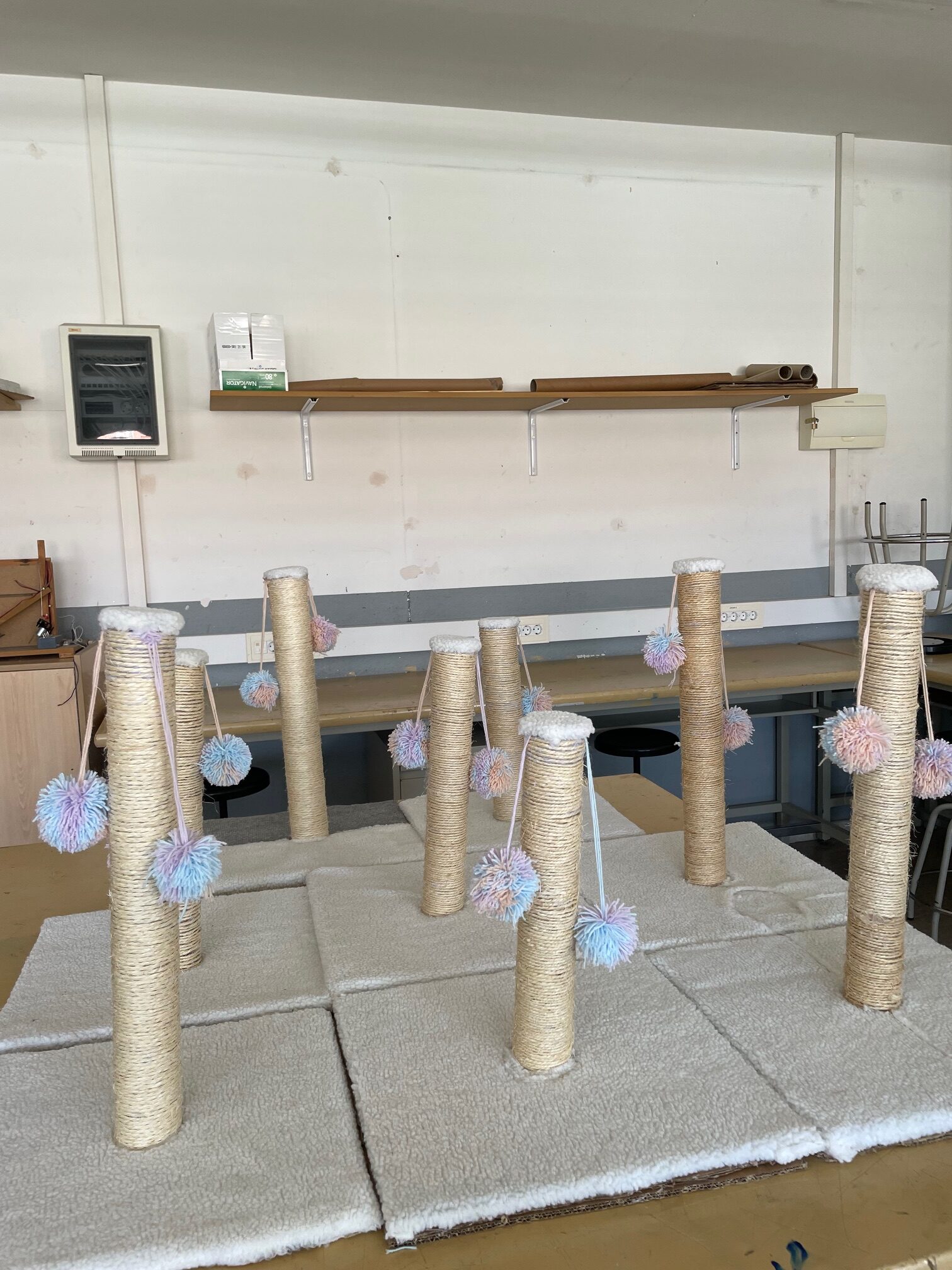 Els alumnes de 2n d’ESO han construït aquests gratadors per a gats al projecte “Coneixem, dibuixem i estimem la natura” a càrrec de l’Andrea Martínez del departament de Tecnologia i la Marta Ruiz del departament de Dibuix. Tots els alumnes han col·laborat al llarg dels tres trimestres en cadascuna de les fases de la seva construcció al taller de Tecnologia de l’institut. La setmana vinent voluntaris de la protectora de Terrassa vindran a recollir-los perquè els gats que viuen a la colònia de la protectora els puguin gaudir. Esperem que els agradin!
