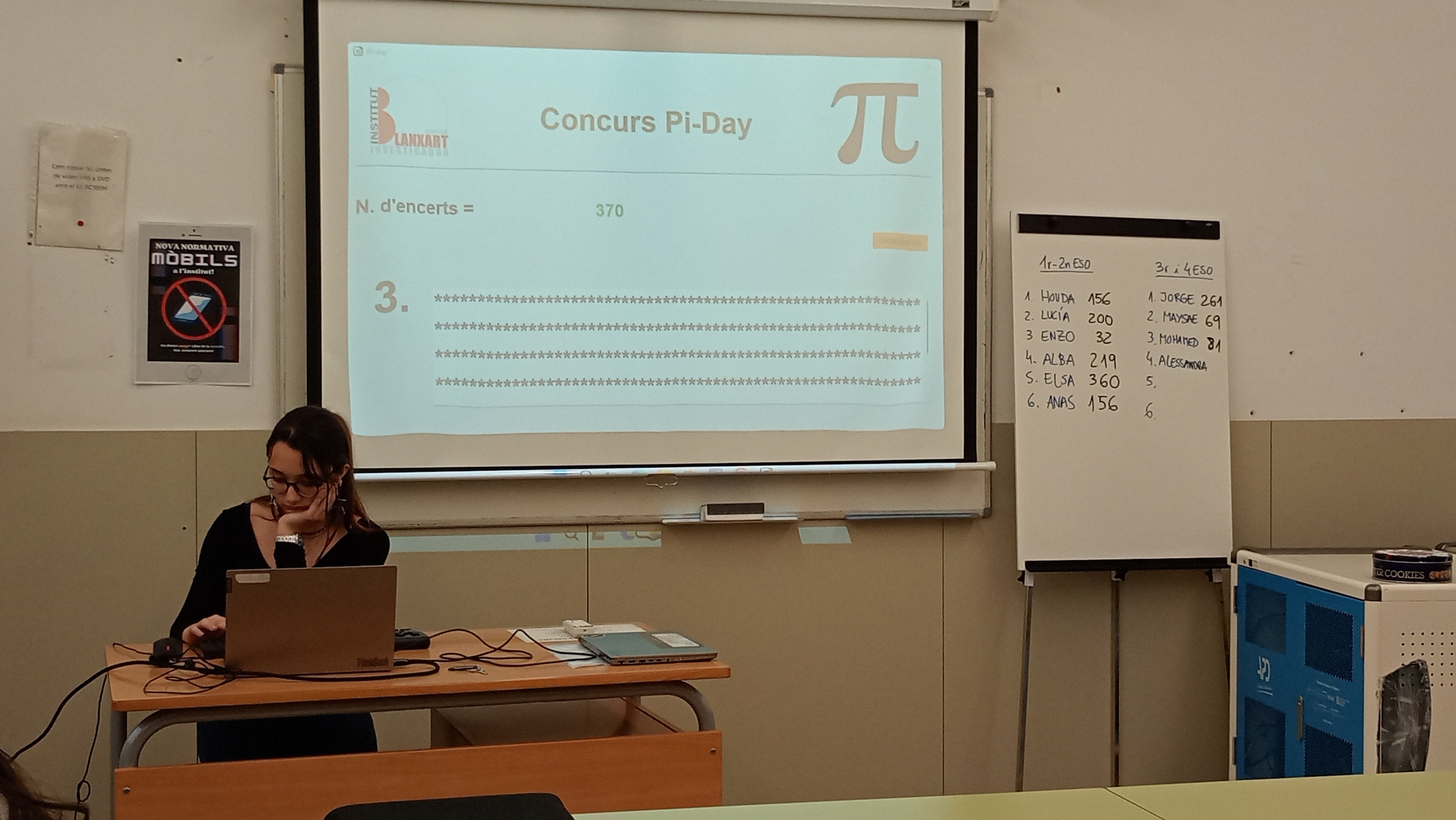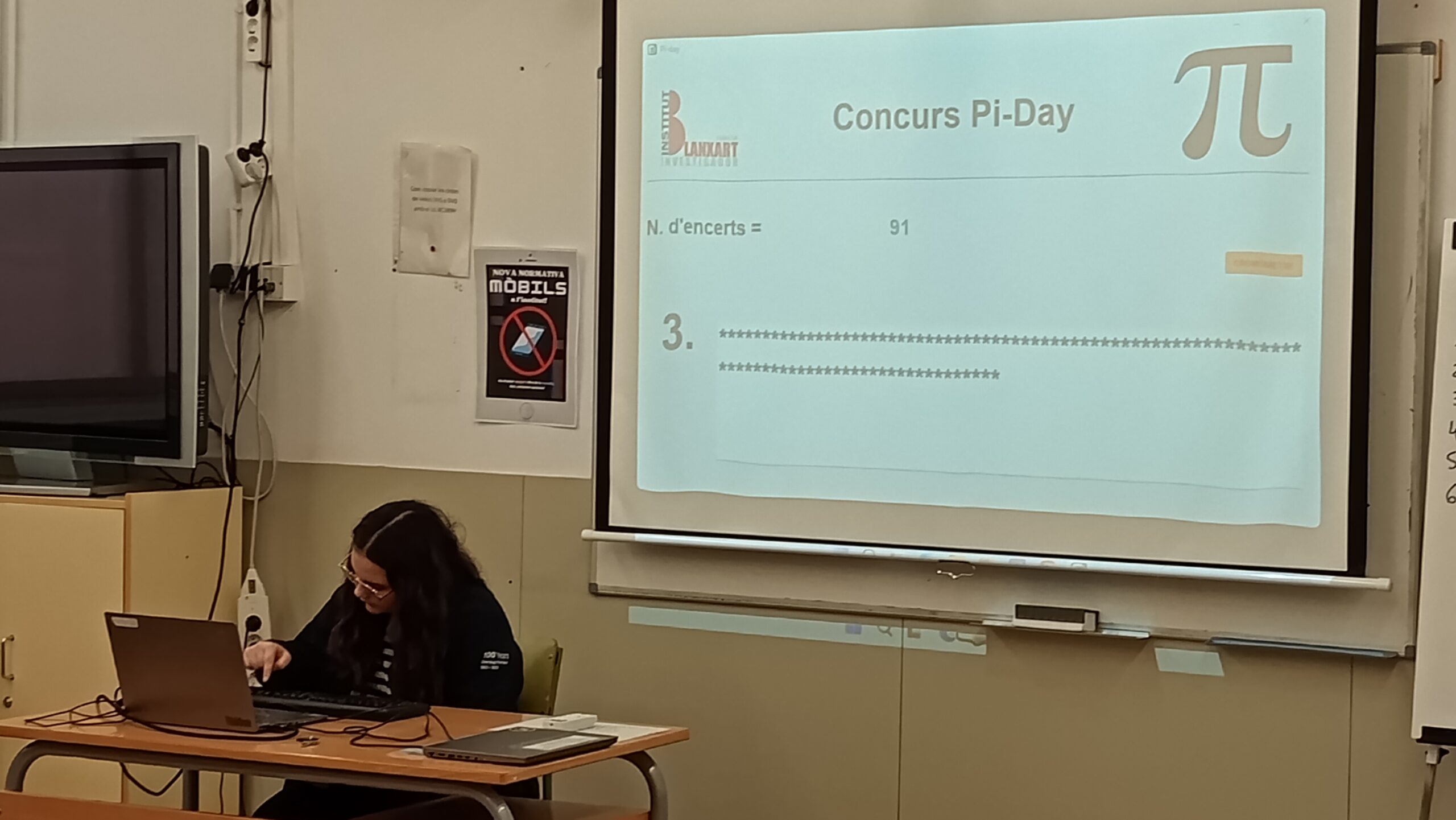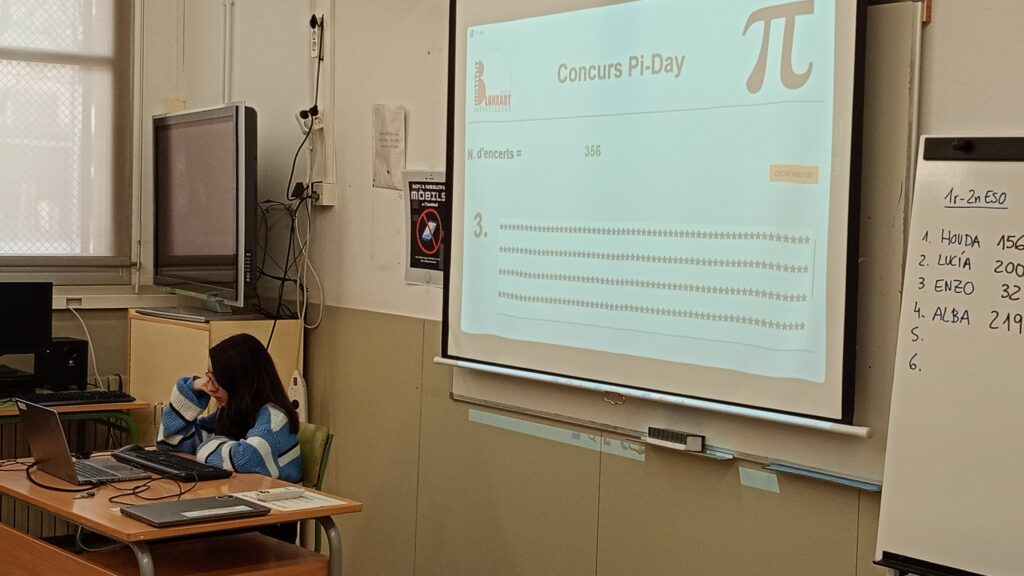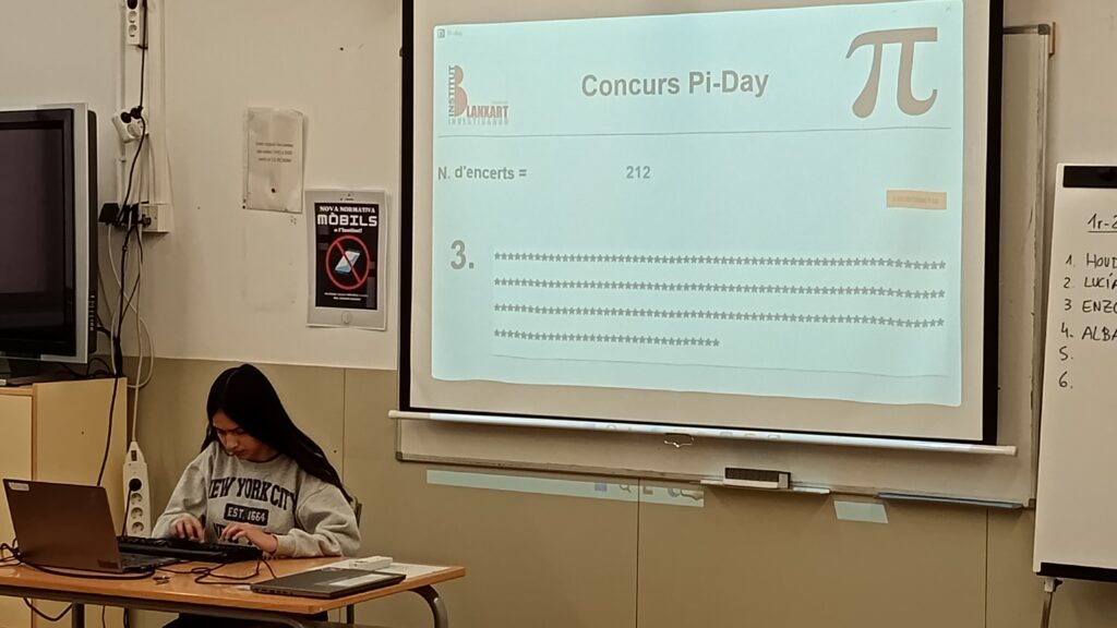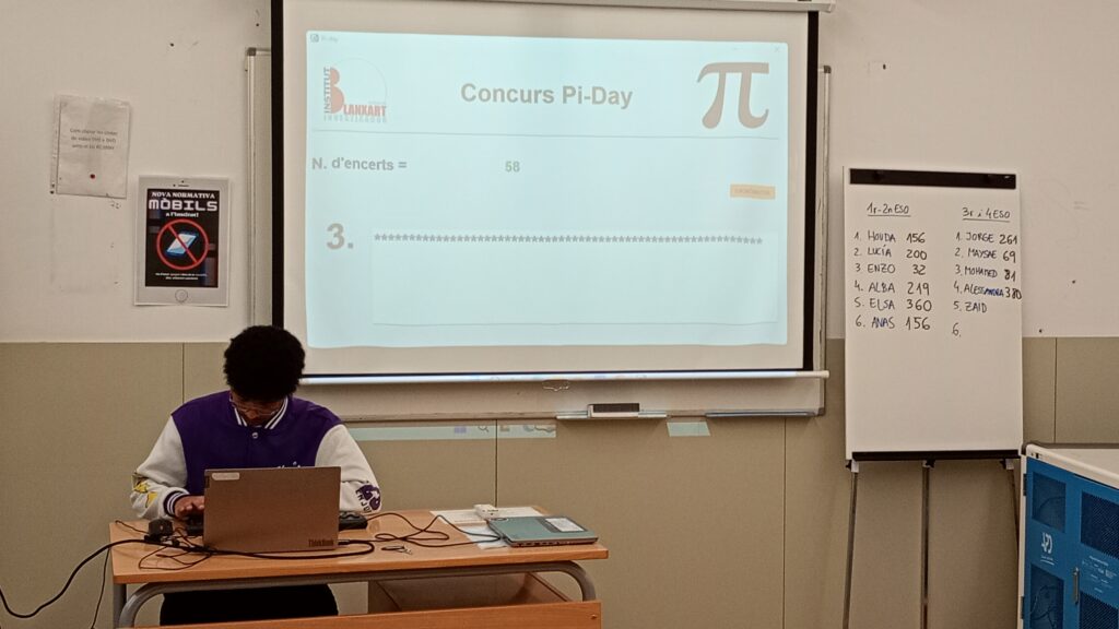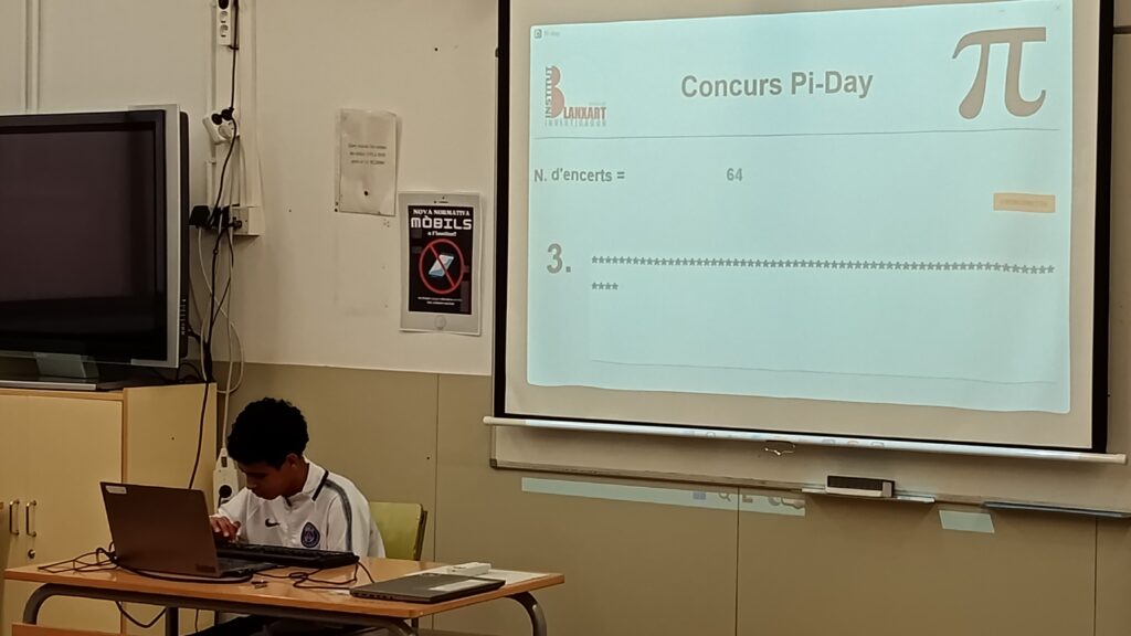 El passat dimecres 12 de març, el nostre institut va celebrar la 6a edició del Concurs de Decimals de Pi, una competició on els alumnes van demostrar la seva capacitat de memòria i concentració. L’Alessandra Dumitrescu, de 4t d’ESO, es va proclamar campiona del Blanxart, memoritzant 380 xifres decimals emportant-se el ja tradicional pastís! 🎂👏