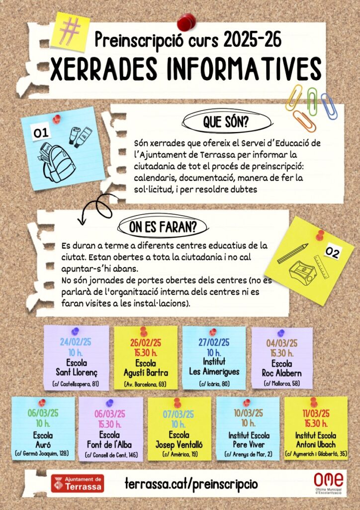 Com cada any, des de l’Oficina Municipal d’Escolarització, s’organitzen unes xerrades informatives adreçades a tota la ciutadania per explicar el procés de preinscripció escolar per a infants i joves de 3 a 16 anys.