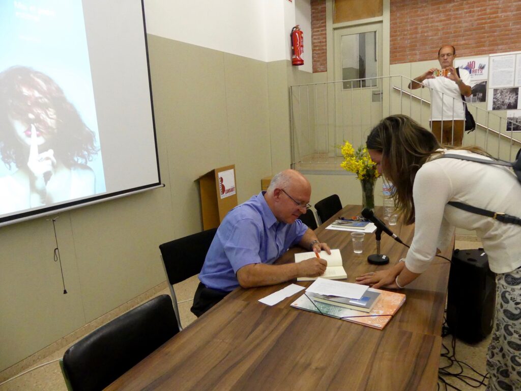 L’acte va tenir lloc a la Sala d’Actes de l’institut, davant més de cent persones, familiars, amics i col·laboradors de l’autor, alumnes, exalumnes, professors, mares de l’Ampa, representants de l’Aula de Lletres, membres del curs de relats Natàlia SallésAntonia Rodríguez, directora del centre, va fer una càlida introducció de l’autor, Josep Gòrriz, el qual afirmà que aquest era el millor espai per presentar el llibre, perquè la seva trajectòria literària ha coincidit amb els trenta anys en què hi ha exercit de professor. Berta Serra Manzanares va fer servir un format d’entrevista i projectà fotografies antigues i modernes dels diversos escenaris on transcorre la història, vinculada a la ciutat de Terrassa. La força de l’amor provoca que els dos protagonistes emprenguin un camí iniciàtic cap a l’interior d’ells mateixos; no saben cap on els durà perquè semblen abocats a un amor impossible, però els traurà de la zona de confort en què s’han instal·lat, que els fa sentir còmodes, però no feliços. Els personatges es basen en persones reals, dues d’elles són les professores Íngrid Ballestar (avui a Matadepera) i Begoña Castillo, i la protagonista té el mateix nom i cognom, i la mateixa voluntat de superació, que la nostra alumna de 2n d’ESO Lorena León. Berta Serra Manzanares va fer èmfasi en el capítol d’agraïments, que enceta Pere Cornellas, un professor que va deixar empremta en l’autor i condicionà la seva manera d’ensenyar la llengua i la literatura, un mètode que li ha proporcionat moltes satisfaccions; en aquest sentit, l’autor va citar Montse Ruz, alumna de fa trenta-cinc anys convertida en escriptora viral d’èxit, Núria Marín, poetessa amb una gran força expressiva, o David López, que recorre el món fent reportatges per diferents agències de comunicació. També va tenir paraules per alumnes que actualment completen la seva formació: Souhaila Belhani, Diarra Fall, Eulàlia Piqué, Camila Garcia, Víctor Mata, Oumaima Rouaz, Lucía Chumilla, Maria Espada…  El reportatge gràfic va anar a càrrec de Marta Ruiz i Montse Bergadà. Simultàniament a la signatura d’exemplars per part de l’autor, va tenir un lloc un entranyable berenar de família preparat per Montse Bergada, Rosa Samsó i Carme Martí, al gimnàs, de cara a les aromes del jardí primaveral, a l’altra banda del mural dedicat a l’investigador Daniel Blanxart, que dóna nom a l’institut, realitzat pels nostres alumnes sota la impecable supervisió de Rat Gallart, Ester Ramon i Marta Ruiz.