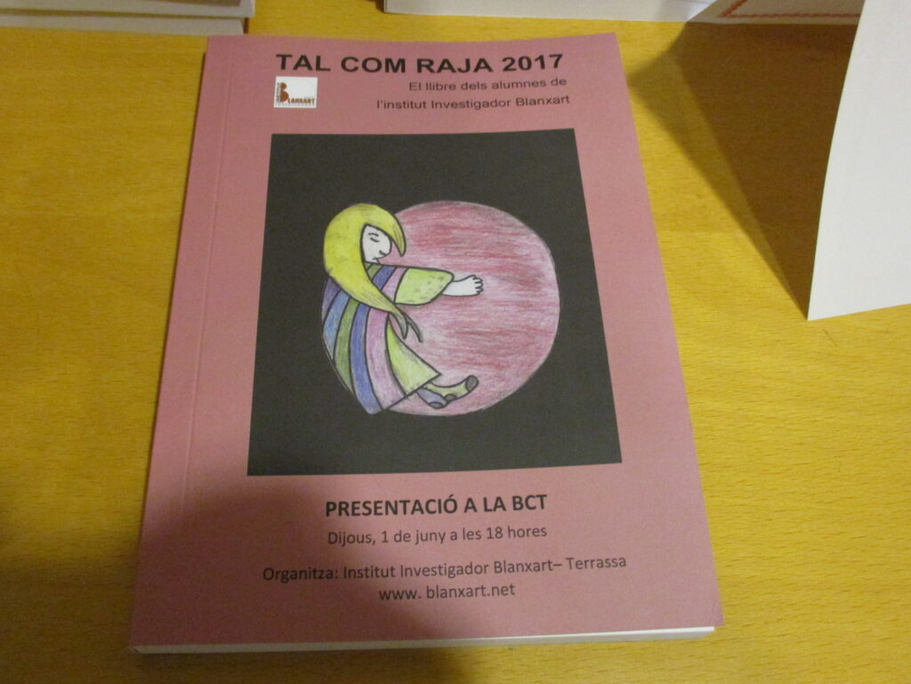 Aquest dijous 1 de juny ha tingut lloc la presentació de la 17a edició del TAL COM RAJA, el llibre dels alumnes del Blanxart, que recull més de cent textos i il·lustracions dels nostres alumnes i els millors treballs de les classes de 6è de les escoles adscrites a l’institut: La Nova Electra, Antoni Ubach i Joan XXIII.