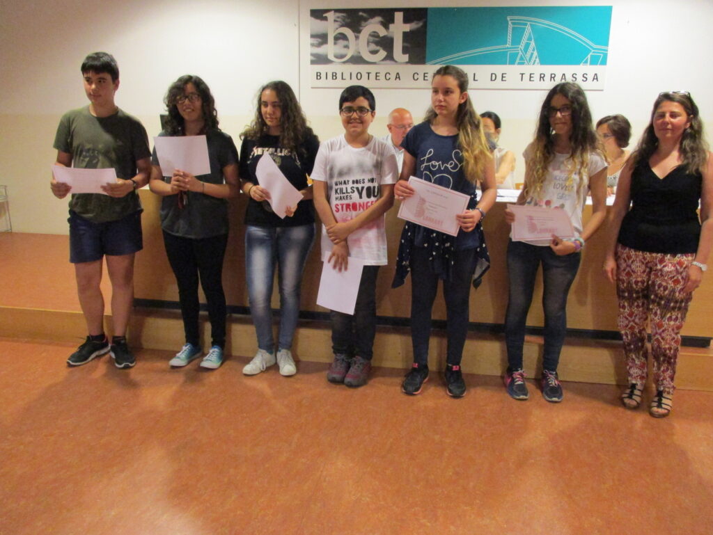 A continuació s’ha procedit al lliurament de diplomes i llibres als alumnes de Primària. Els premis de l’institut se’ls han emportat el text Una història de pel·lícula, de Míriam Vallès, i la il·lustració sobre aquest mateix escrit, obra d’Anaís Aranda; els dos guardonats són alumnes de l’escola Joan XXIII.