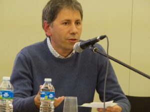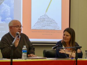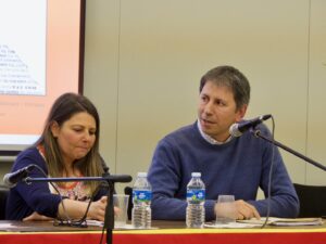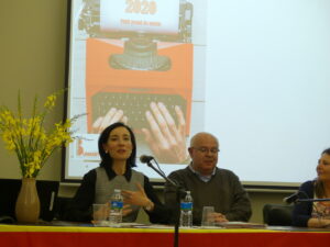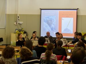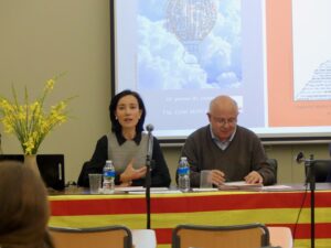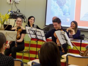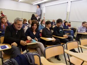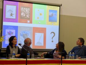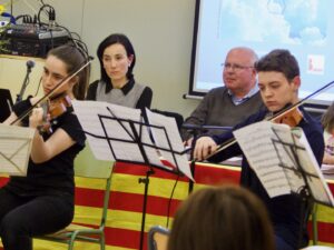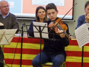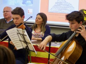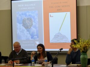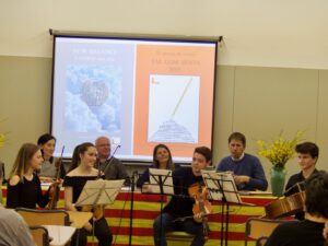 La Sala d’Actes de l’institut s’ha omplert de mestres i professors escriptors, alumnes, pares i mares acompanyants, mares de l’AMPA, companys, excompanys, exalumnes…, un públic heterogeni i de diverses edats que comparteix l’amor per la literatura. Antonia Rodríguez, directora del centre, ha donat suport a la iniciativa i agraït la feina feta fins ara a l’equip del TAL COM SENTS. Marta Ruiz, coordinadora general i directora artística del projecte, ha explicat com cada any resulta més fàcil treballar en un projecte consolidat com ja és el Tal Com Sents i com els alumnes del Batxillerat Artístic es fan seves les històries dels relats i les reinterpreten i versionen amb dibuixos fascinants. Josep Gòrriz ha vinculat la docència a la creativitat destacant el compromís amb la responsabilitat que tenim els docents amb els nostres alumnes. Enric Vilar ha presentat el llibre NEW BALANCE I ALTRES RELATS i ha fet una acurada valoració dels contes d’aquesta edició parlant dels seus protagonistes, veritables comunicadors de les històries. Finalment, ha proclamat solemnement els guanyadors, que ens han adreçat unes sentides paraules. La Sandra Vallès ha tingut cura del reportatge gràfic de la sessió. L’acte ha estat amenitzat per un quartet de corda del Conservatori Municipal de Terrassa.
