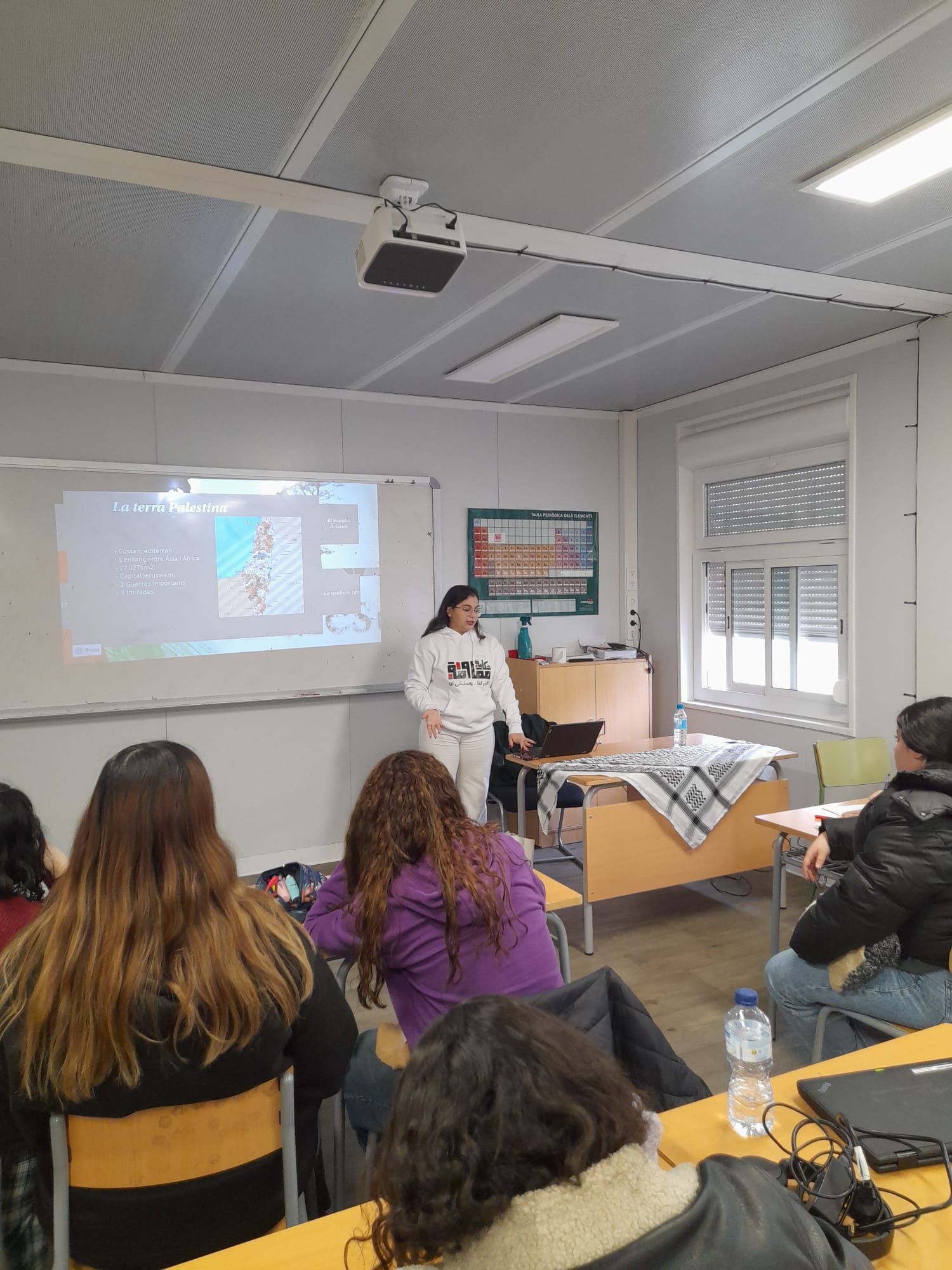 El passat 12 de desembre, l’Institut va rebre una xerrada sobre el conflicte Israel-Palestina i la realitat socioeconòmica de la Franja de Gaza. Ruba Abumuaileq, voluntaria de la franja de Gaza que dedica voluntàriament a poder explicar tor el conflicte, va explicar les arrels històriques del conflicte i va exposar la dura situació que viu la població de Gaza, afectada pel bloqueig, l’atur i la manca de recursos.