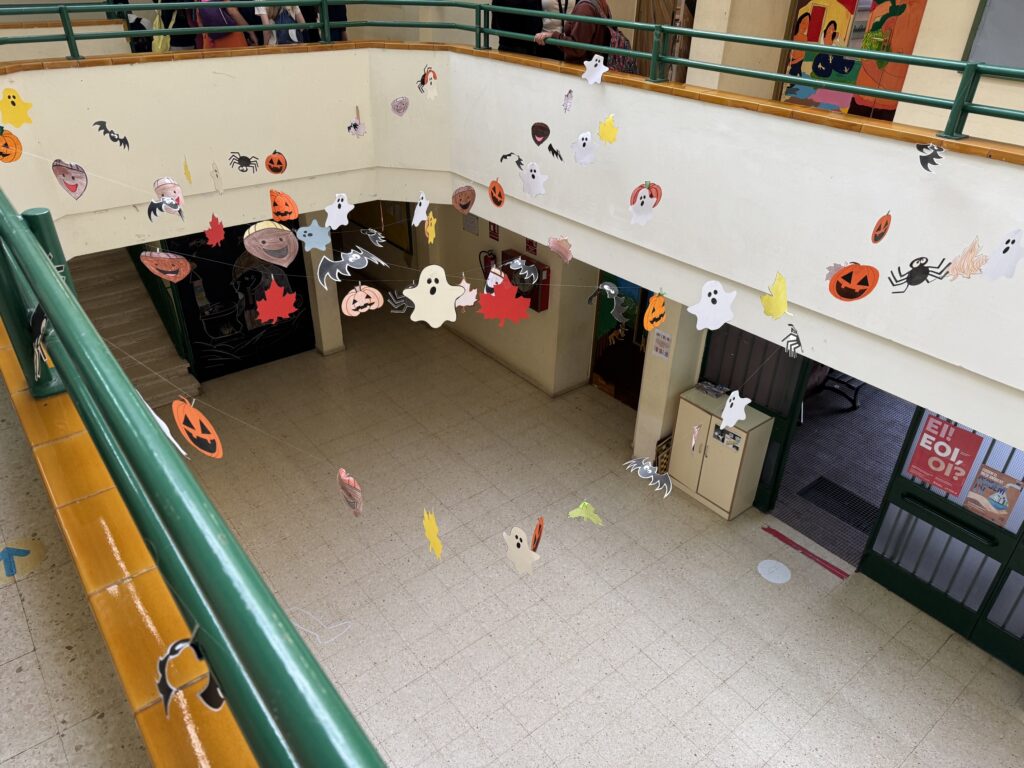 Els alumnes de 1r i 3r d’ESO han decorat el vestíbul de l’institut amb motius de Castanyada i Halloween. Aquest ha estat el resultat! A més, a la zona de l’exposició hi trobareu unes màscares que us podeu emprovar, atreviu-vos a posar-vos-les i, si ho feu, no oblideu de fer-vos una foto!