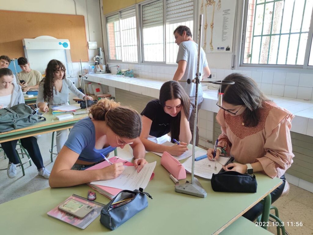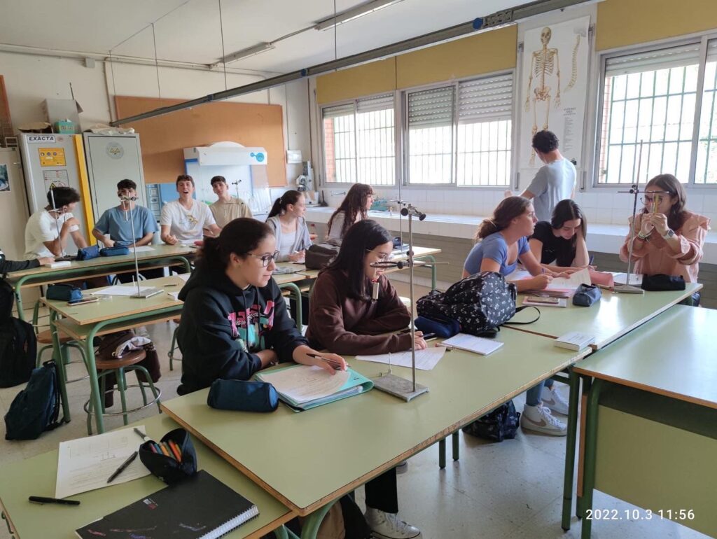 Els alumnes de reptes científics de FQ de 1r de batxillerat han realitzat la primera pràctica de l’assignatura, sobre la determinació experimental del període d’oscilació d’una massa penjada en una molla. Han pres unes mesures força bones i els resultats s’han aproximat bé als valors teòrics. Han fet una molt bona feina experimental!