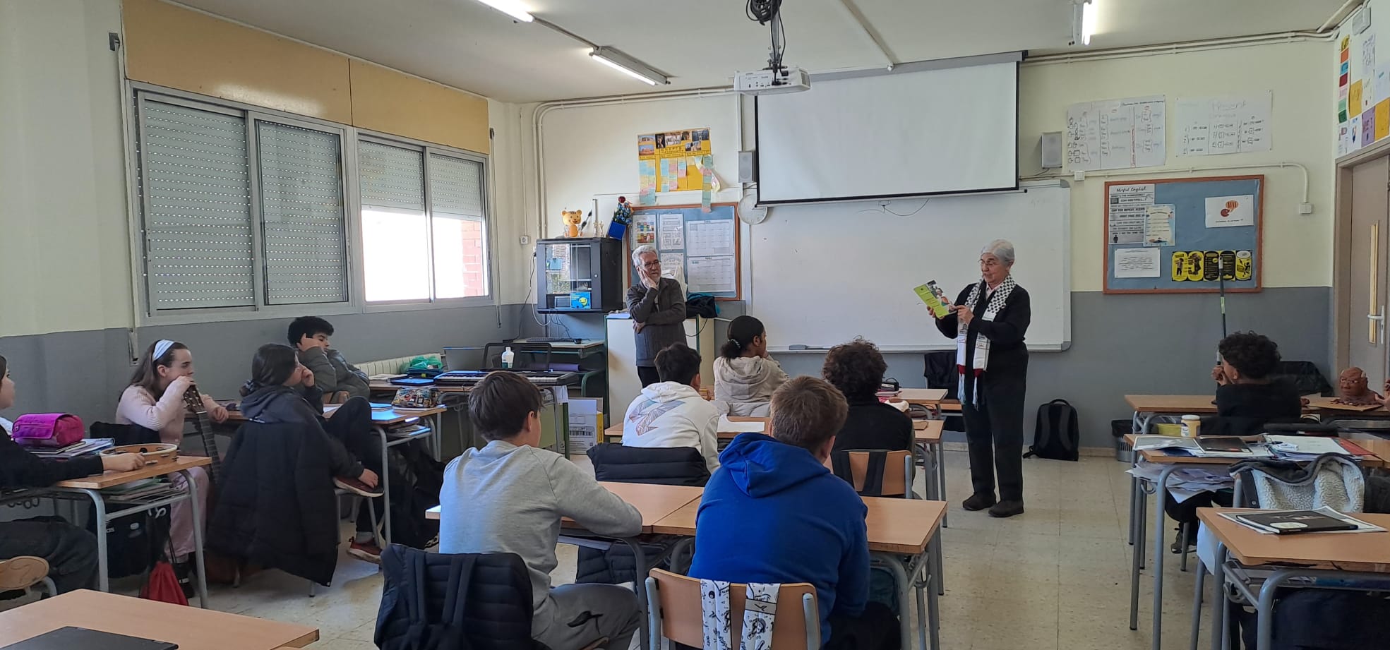 Ahir, els alumnes de 1r d’ESO C van rebre la visita de la Pilar Massana, vídua del Jaume Botey, i en Joan Camós, amic del Jaume i responsable de l’Associació Llegat Jaume Botey. Van compartir amb els estudiants anècdotes sobre la vida del Jaume.