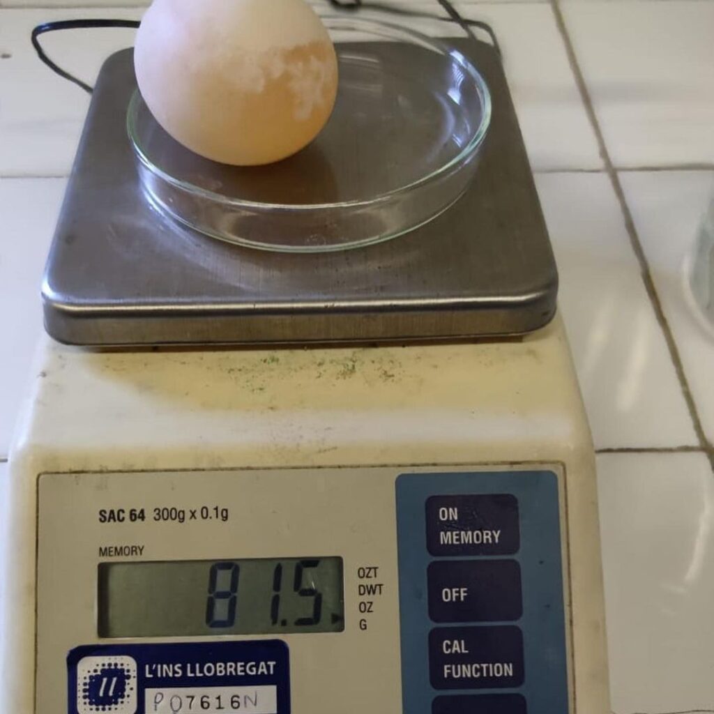 1r Batxillerat Biologia: comprovem el fenòmen de l’osmosi al laboratori amb un ou de gallina. Ha incrementat un 25% el seu pes!! Carmen02/10/23