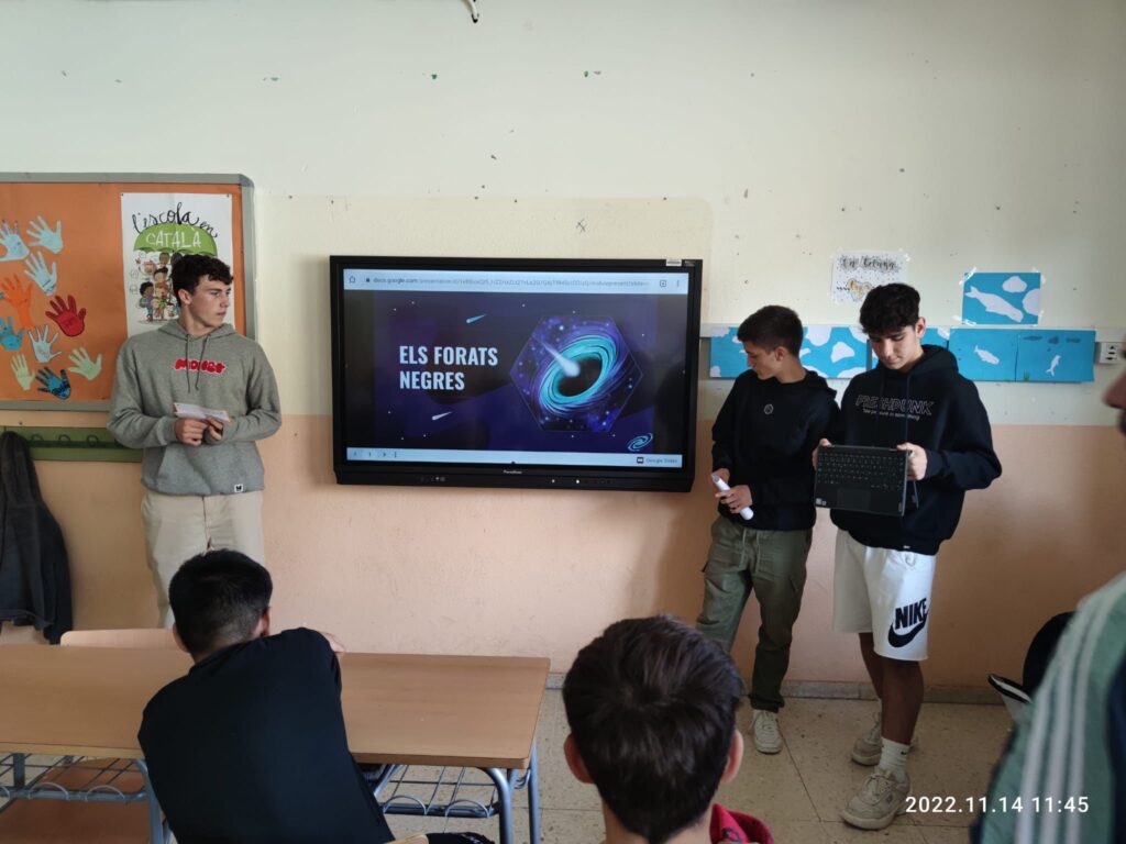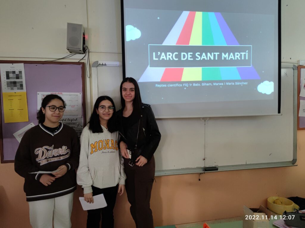 Setmana de la Ciència: els alumnes de 1rBatx de Reptes Científics han fet unes presentacions amb demostracions experimentals als 1r ESO: Carmen16/11/22 – Forats negres – Les aurores boreals – Estels fugaços – La llum a les superfícies – L’arc de Sant Martí – Focs follets – Descomposició dels aliments