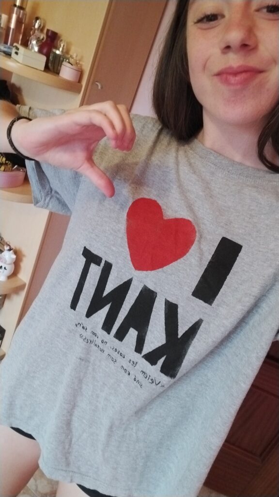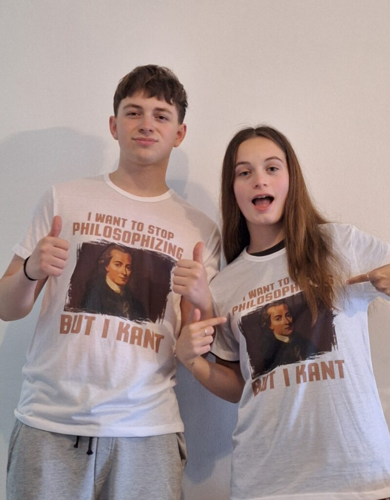 En una iniciativa per pujar la nota del trimestre i demostrar el seu entusiasme per la Filosofia, gairebé tot l’alumnat de les classes A i B va venir amb una samarreta dedicada a Kant. La idea va sorgir després que la professora de Filosofia els comentés que li n’havien regalat una, i justament a l’examen va tractar sobre l’ètica kantiana i els imperatius hipotètics i categòrics. 📖🤓
