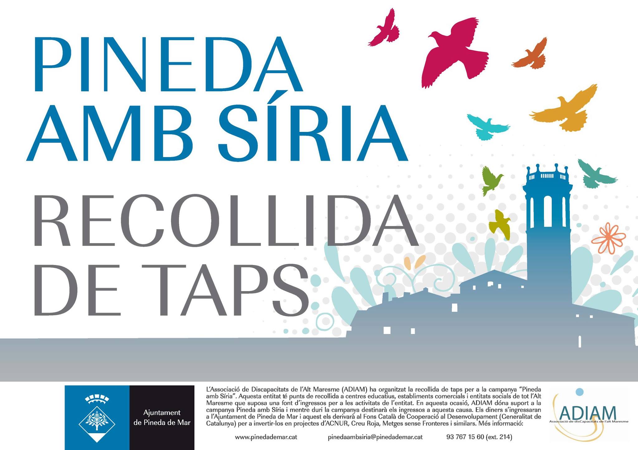 L’entitat ADIAM (Associació de Discapacitats de l’Alt Maresme) recull habitualment taps solidaris (taps de plàstic) i els guanys els destinen a diversos projectes que tenen en marxa. Aquesta entitat s’ha adherit a la campanya “Pineda amb Síria” promoguda per l’Ajuntament per a… Llegeix més»