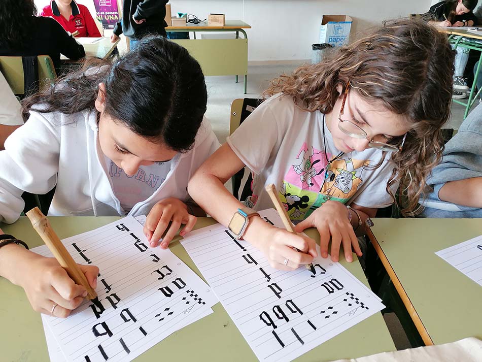 L’alumnat de 2n ha realitzat un taller d’escriptura gòtica i, utilitzant la cartolina imitant el pergamí que van fer en un altre taller, han escrit un concepte o una moralitat d’un dels contes de El conde Lucanor.