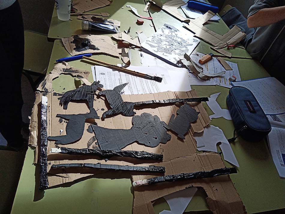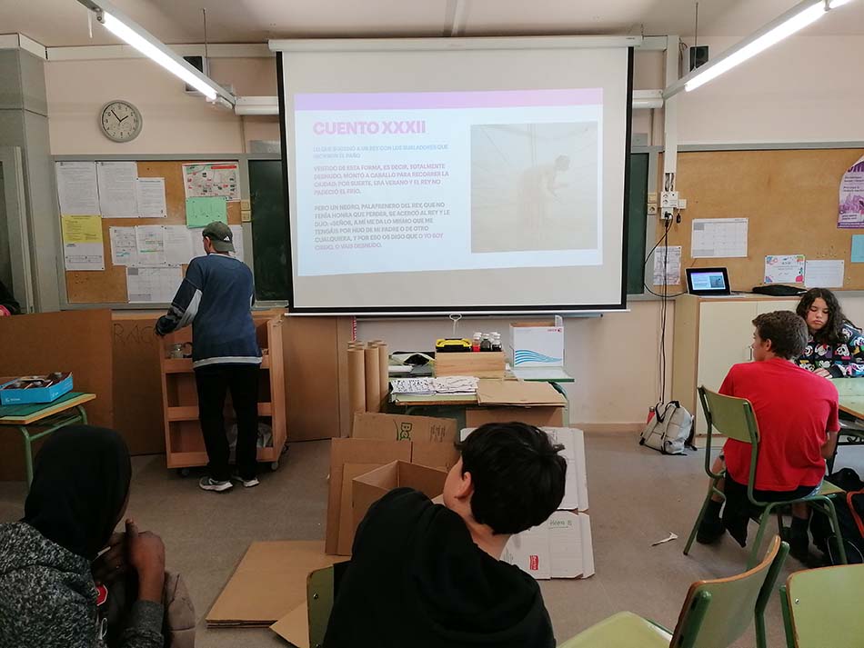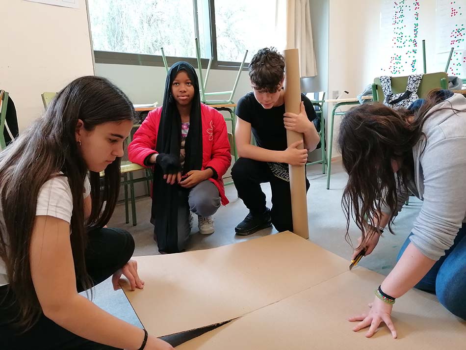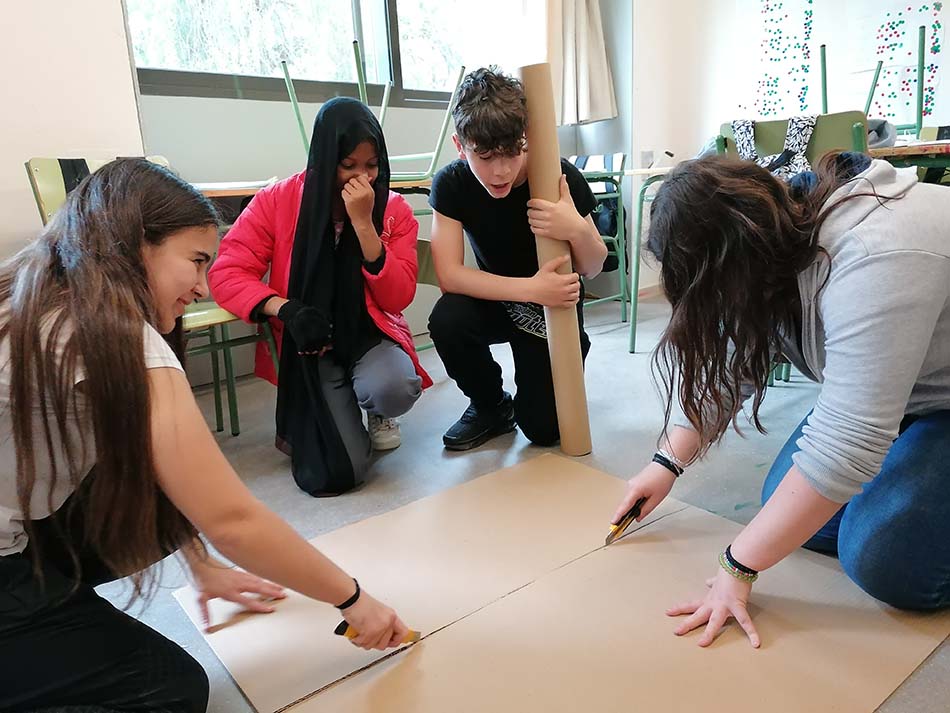 L’escenògrafa Ona Guilera ha donat moltes idees perquè cada grup cooperatiu pugui crear el seu propi escenari, depenent del conte. Des d’espases, un teatre d’ombres xineses, un bosc, etc. La imaginació i la creativitat no tenen límits.