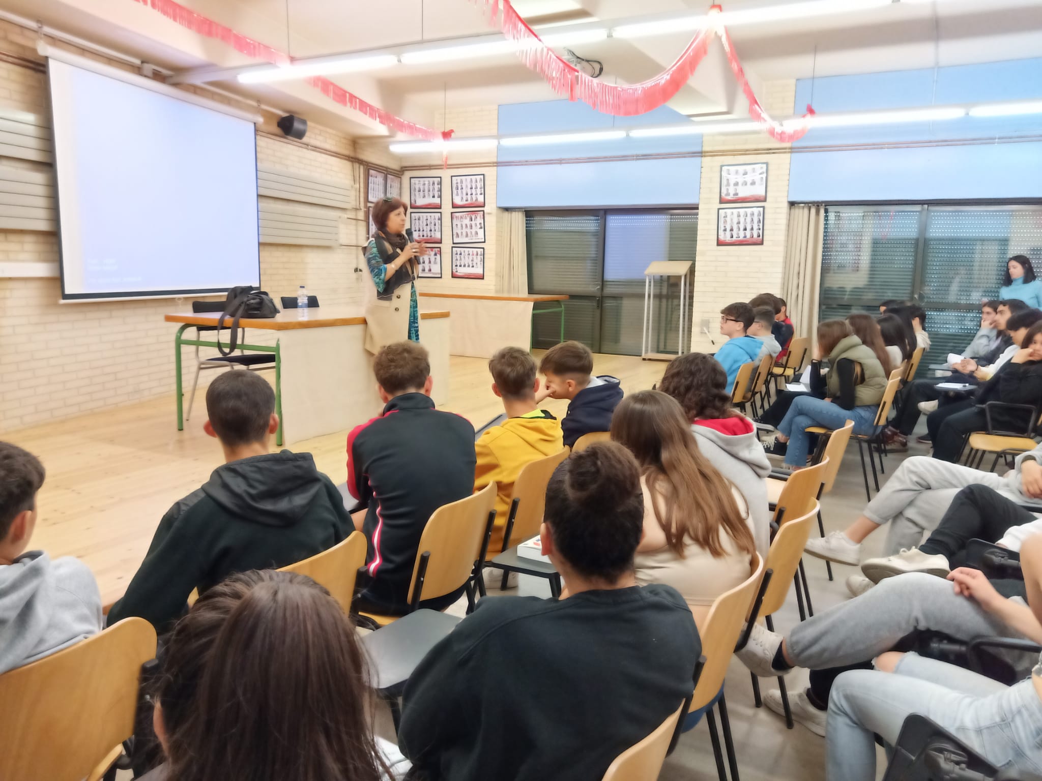 Avui L’Ana Alcolea ens ha visitat al centre per a fer una xerrada amb l’alumnat de 3r d’ESO que ha llegit el seu llibre, «Donde aprenden a volar las gaviotas».