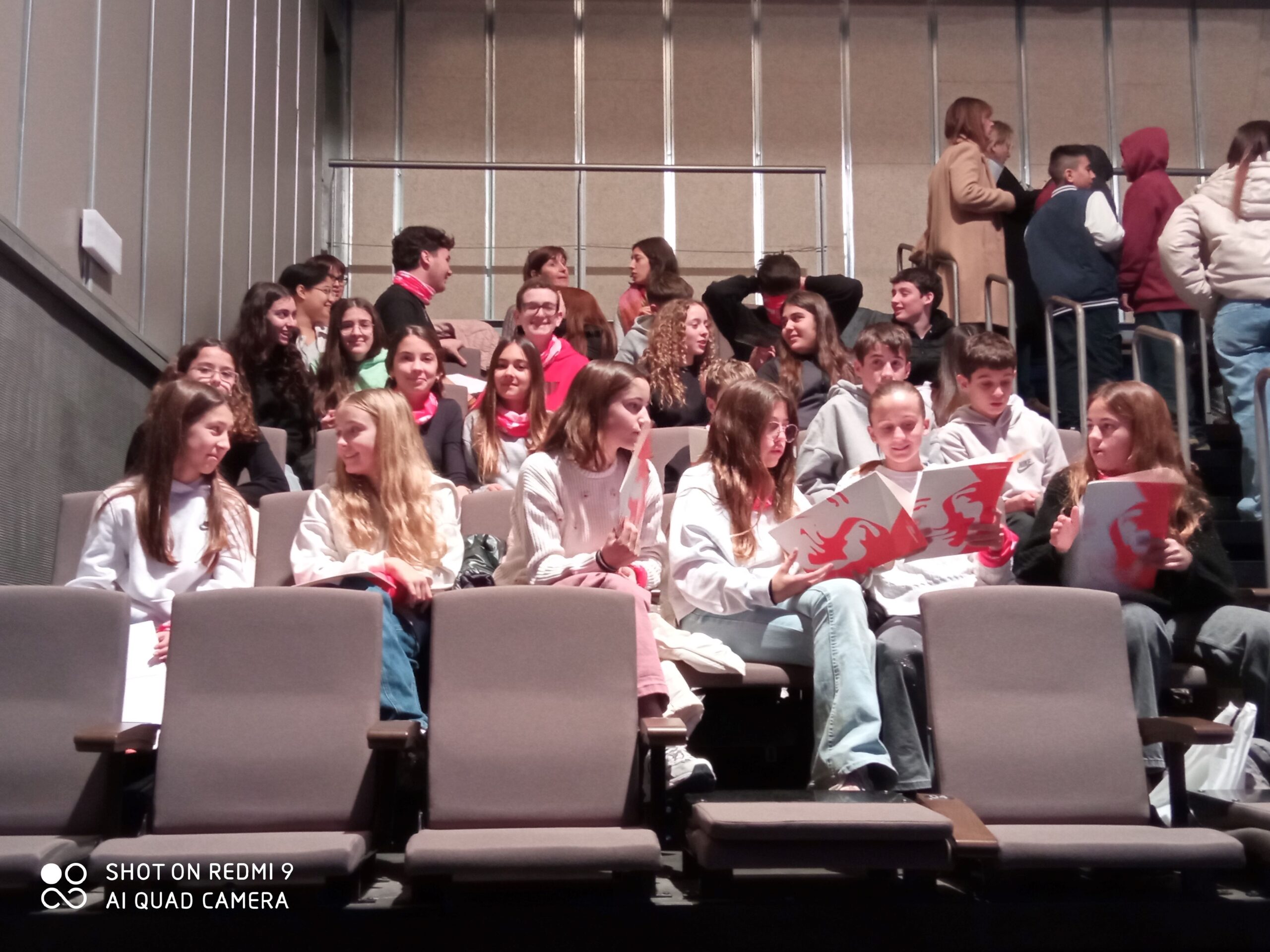 Després d’assistir a la participació d’altres escoles i instituts del municipi, els alumnes Lluís Buscató, Irene Aranda, Ian Sillué i Pau Torrent van recitar el poema avanguardista “Interior” de Joan Salvat Papasseit.