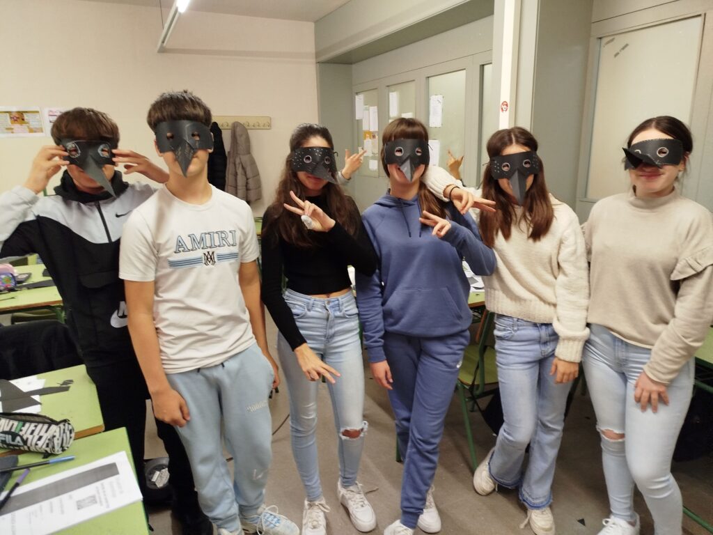 Aquesta setmana estem realitzant a les classes de 2n d’ESO el projecte “Detrás de un conde hay un buen consejero”. Al llarg d’aquests dies l’alumnat s’immergeix en el món medieval, creant des d’un escut, un pergamí o una màscara per protegir-se de la pesta negra. També esdevindran escrivans del segle XIV amb un taller d’escriptura gòtica. El repte final serà traslladar un conte de El conde Lucanor a una teatralització, a través de les ombres xineses.