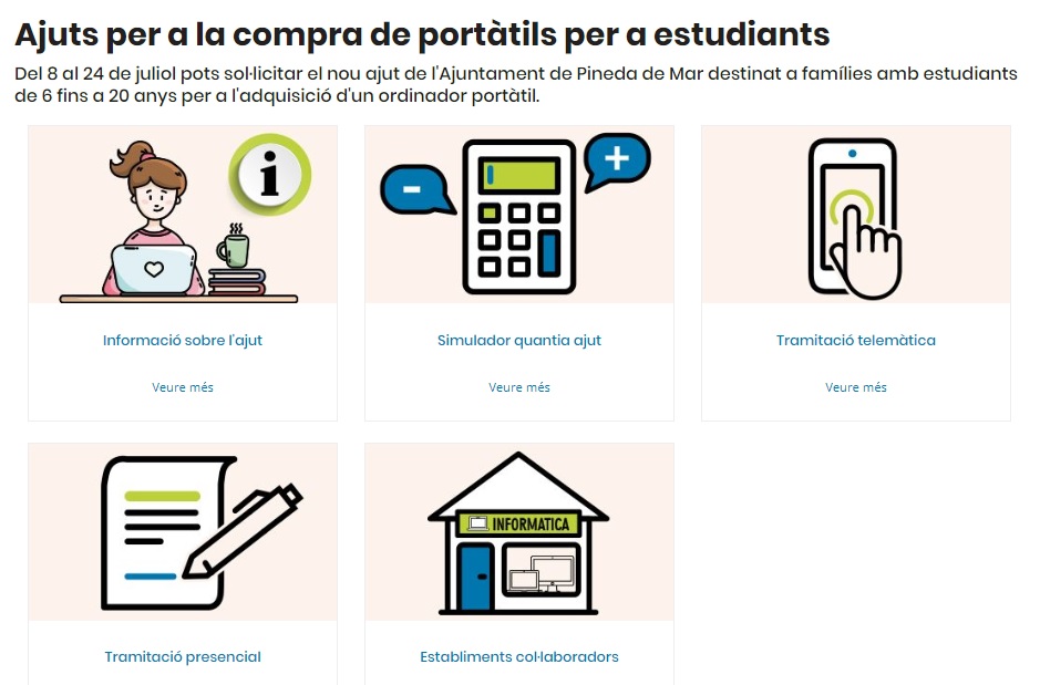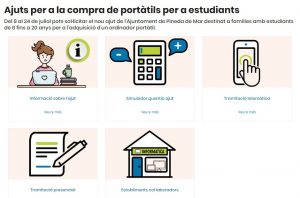 Podeu fer les sol·licituds a través de https://www.pinedademar.cat/ajuts-portatils
