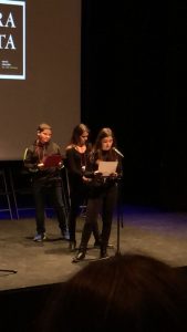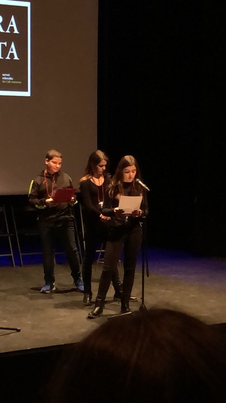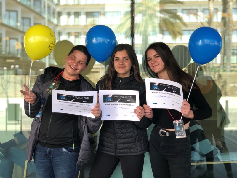 Del nostre institut, han participat tres lectors, dos de 1r d’ESO i un de 2n DESO: L’ Íker Sevilla, que ha recitat el poema “La muralla” de Nicolás Guillén; l’ Enia García, que ha recitat “Para preguntar”, de Gloria Fuertes; i la Martina Doy, que ha recitat “El poble” de Miquel Martí i Pol. Els nostres rapsodes ho han fet molt bé amb poemes que parlen de la integració, la injústicia i el sentiment de pertànyer al poble.