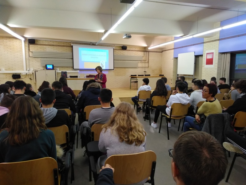 Ana Alcolea ens ha visitat avui a l’institut i ha explicat als alumnes de 4t D’ESO algunes anècdotes sobre l’ofici d’escriure i sobre el procés d’escriptura del llibre que l’alumnat de 4t d’ESO ha llegit, Donde aprenden a volar las gaviotas. El llibre està escrit entre dos temps, la II Guerra Mundial a Noruega i una època més actual i tracta de l’ocupació de l’exèrcit alemany, al mateix temps que és un llibre sobre el salt des de l’adolescència al món adult. L’alumnat s’ha sorprès de la important part de realitat del llibre i de la relació amb la família de l’autora ja que, com l’Ana Alcolea ha dit, ella escriu des de l’experiència. També ha recomanat altres llibres, com La noche más oscura, ambientat com Donde aprenden a volar las gaviotas a l’època de la II Guerra Mundial, una guerra que, com ha recordat l’autora, va commocionar Europa i en què van morir 60 milions de persones.