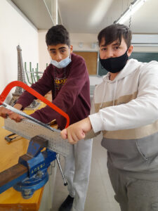 L’alumnat de 3r B, a l’àrea de Tecnologia, ha estat aprenent a serrar l’acer.