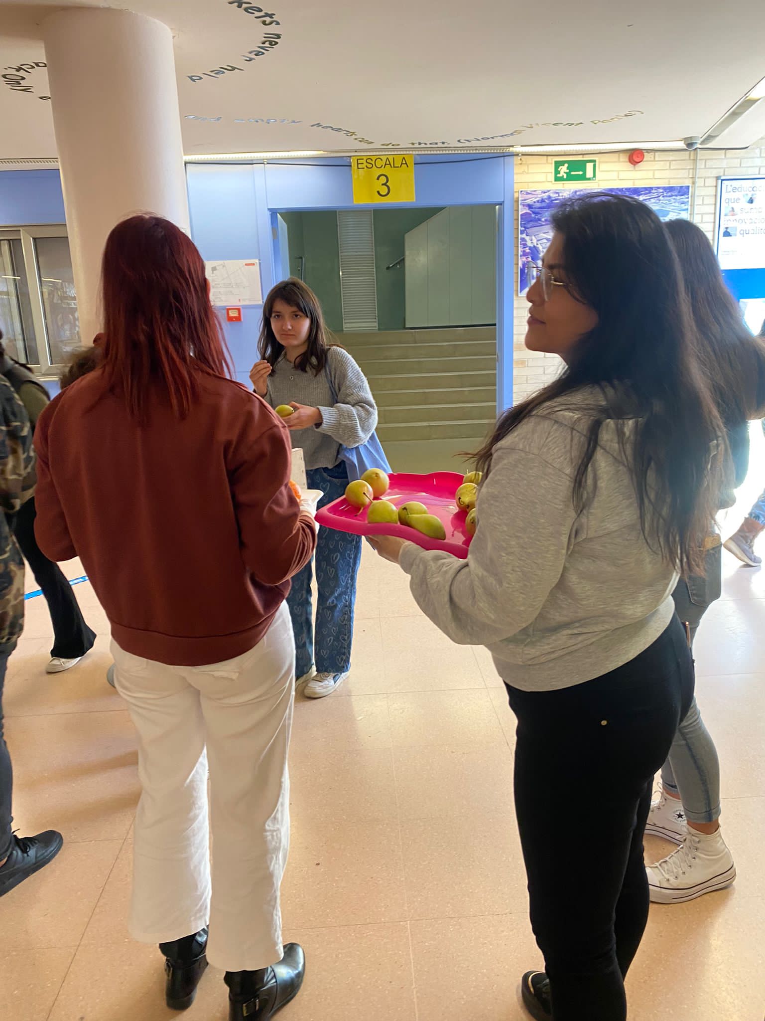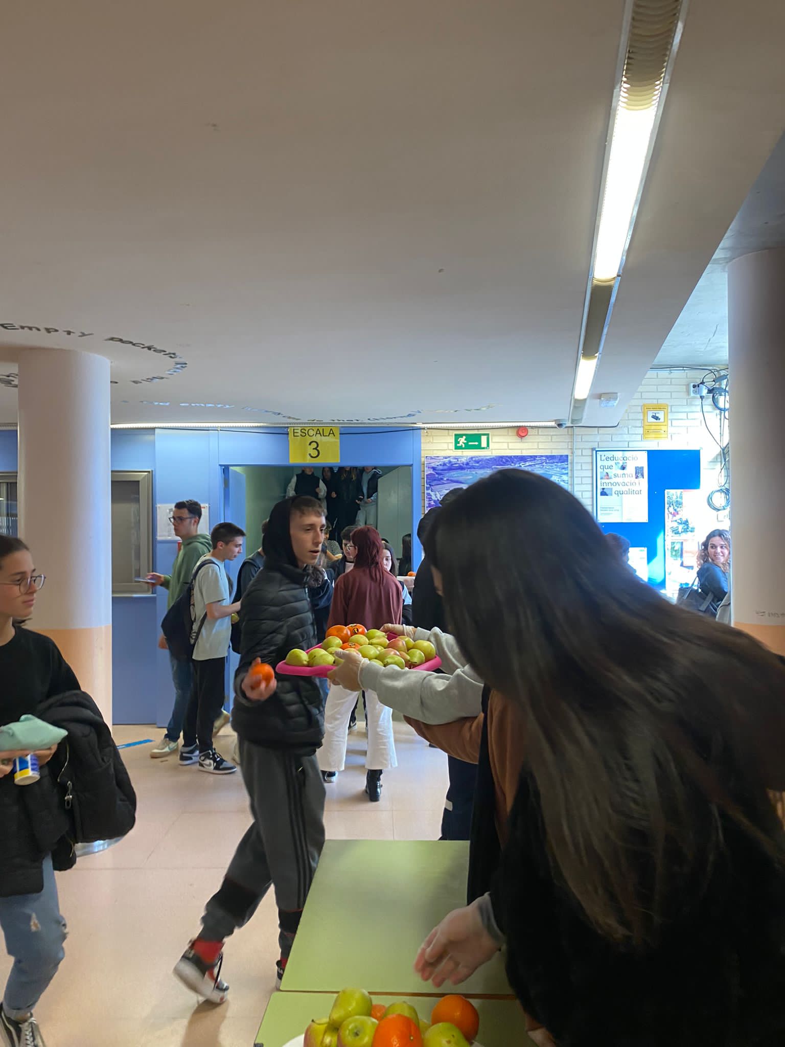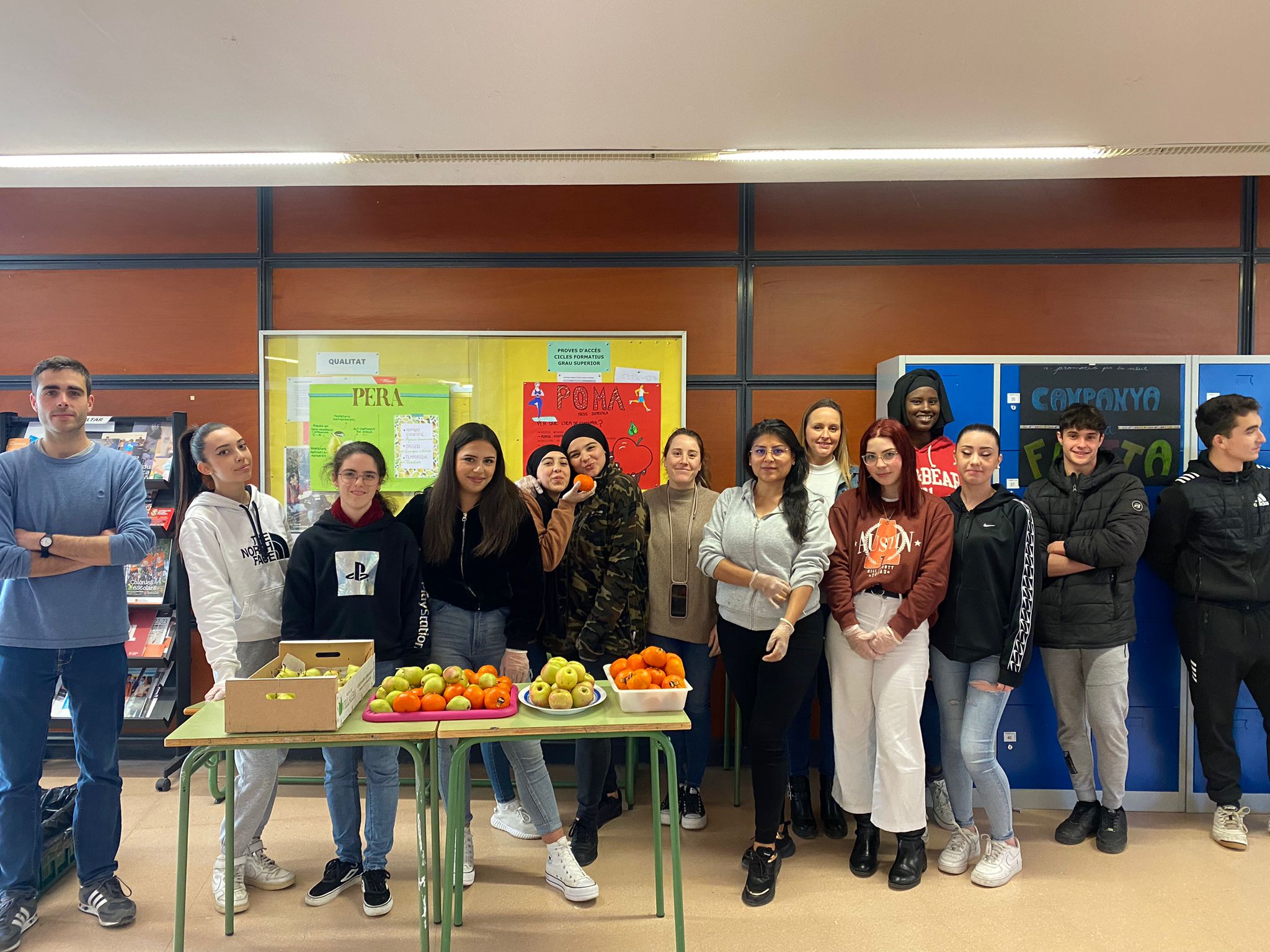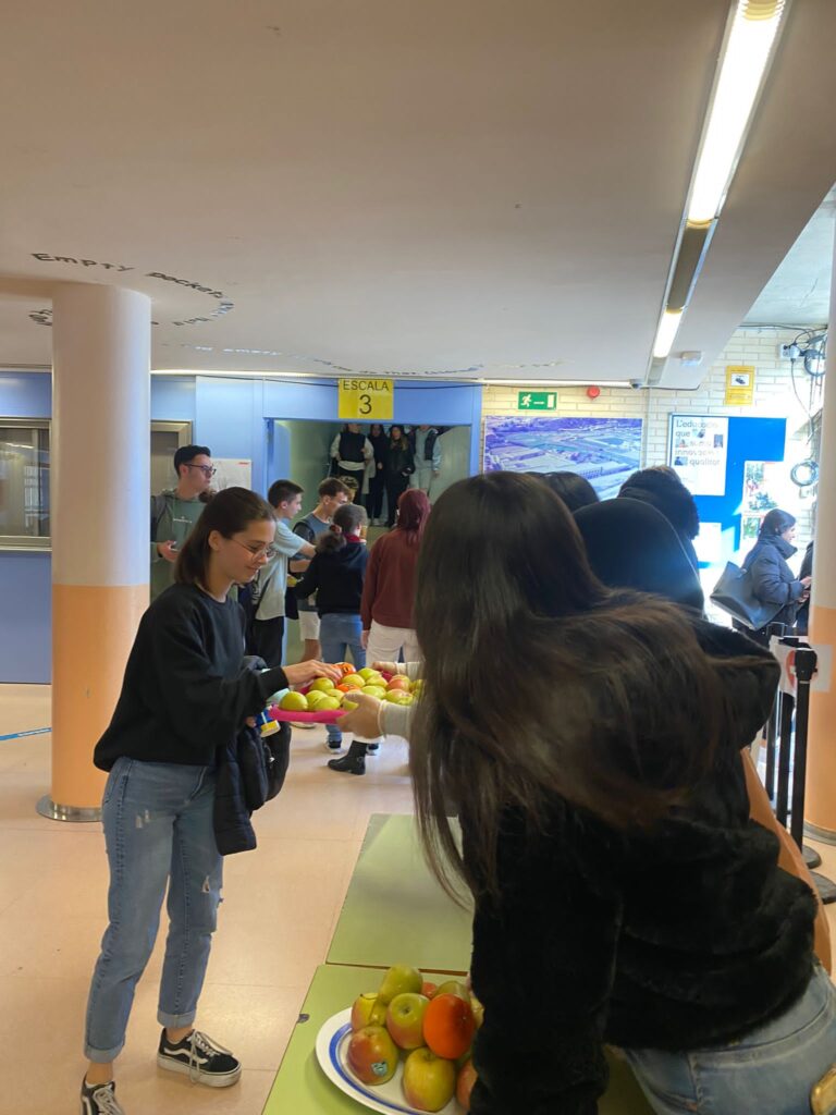 El dia 29 de març les alumnes de CAI van repartir dues-centes cinquanta peces de fruita entre tot l’alumnat de Cicles del centre, culminant així diverses sessions de treball a classe de Promoció de la Salut a la qual s’havien estat enllestint perquè tot sortís de la millor manera. L’anomenada «Campanya de la fruita» va comptar amb el suport inestimable de l’Ajuntament de Pineda què, via la Cooperativa Agrícola del Maresme, va donar gratuïtament les peces de fruita.