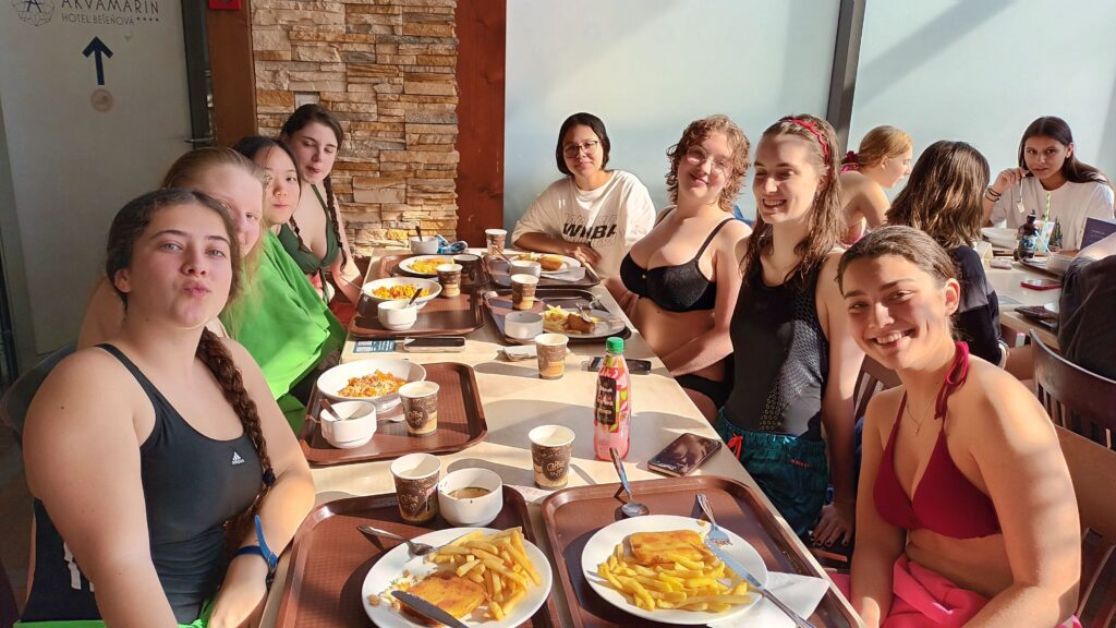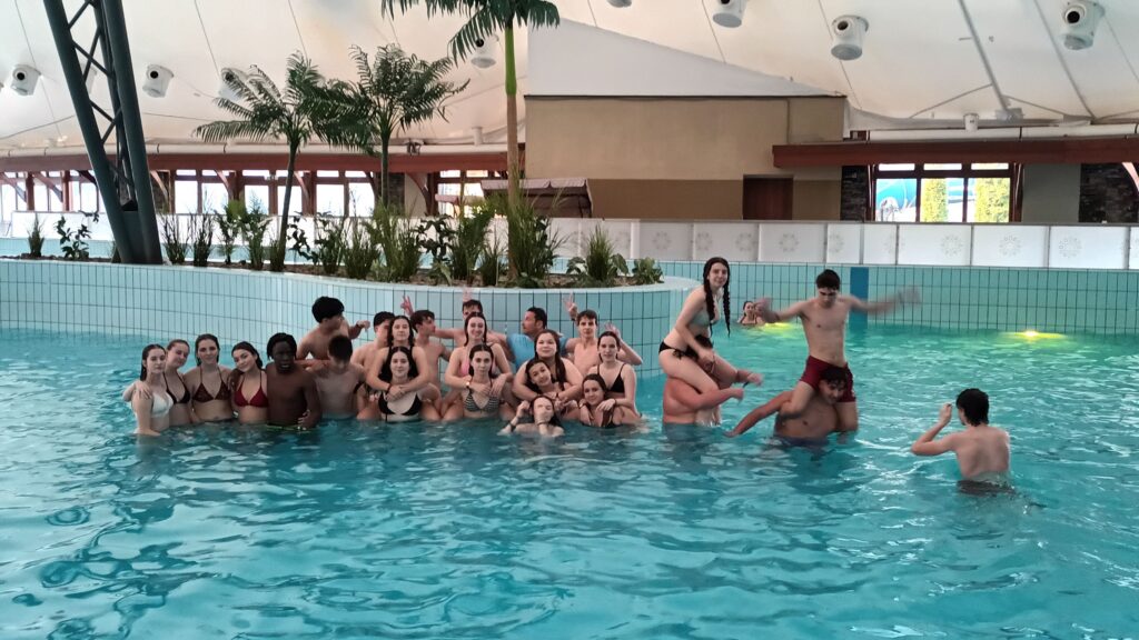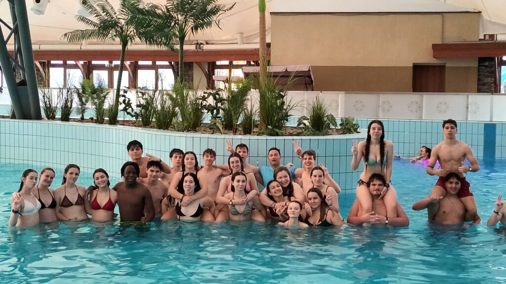 Dia 4 Intercanvi Eslovàquia Javi Hinojosa13/03/26 Avui, “corrientes que curan”: hem anat a un balneari d’aigües termals després d’una xerrada sobre els seus beneficis. Hem estat en remull tot el dia! Una gran experiència termal; hem tornat ben relaxats.