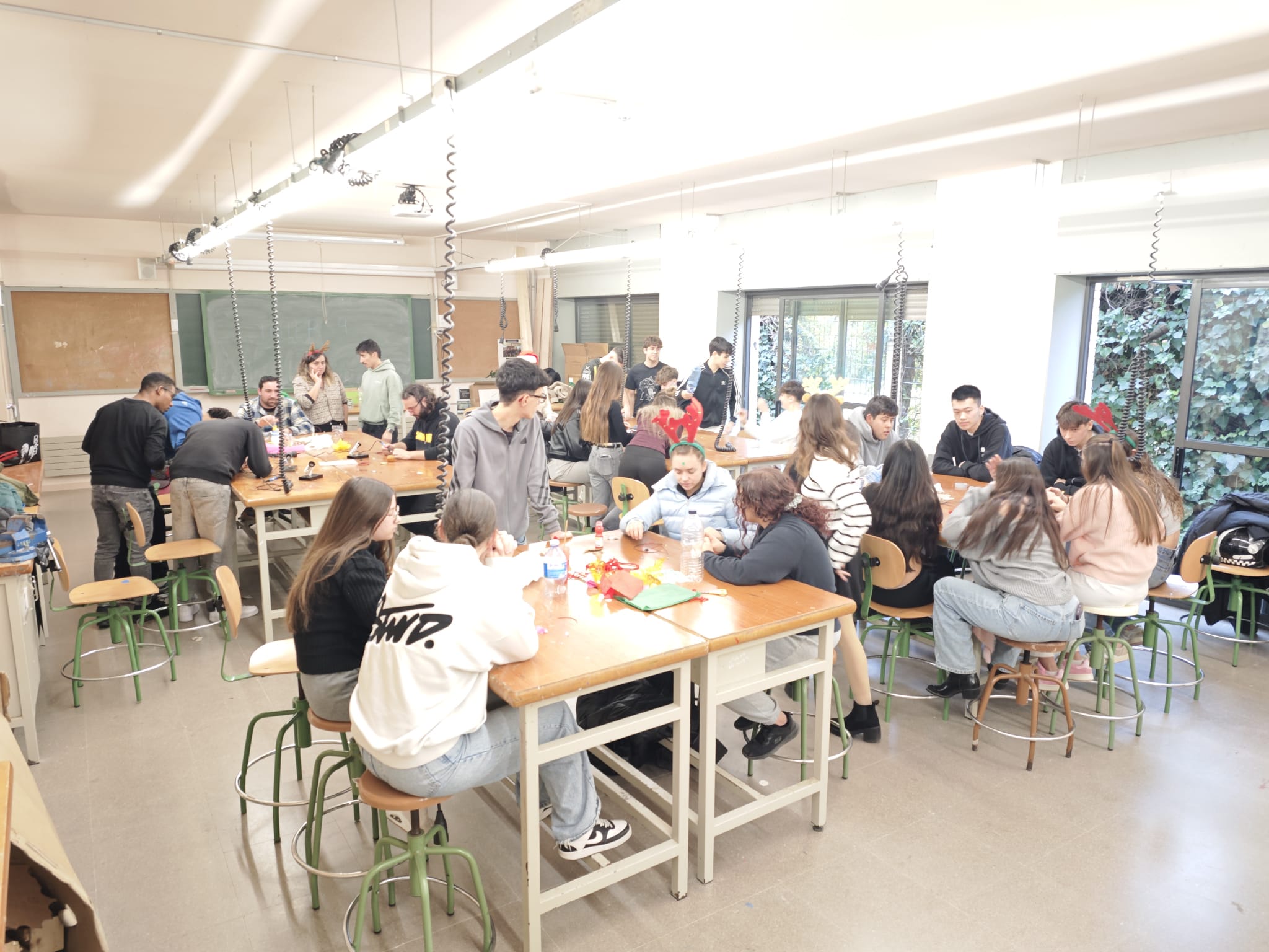 L’alumnat de 1r i el Departament de TEI, va organitzar amb molta il·lusió i empenta la Festa d’hivern per a la resta de Cicles Formatius, de l’Institut Joan Coromines, la tarda de divendres. Es va iniciar la jornada amb un taller de fanalets elèctrics coorganitzat per l’alumnat i el Departament d’Electricitat i Robòtica, a més, de la celebració d’un bingo musical. Seguidament, fanalets en mà, es va fer una recerca de tions a les fosques per tot el centre. A continuació, es van dinamitzar unes campanades ben dinàmiques i originals. Finalment, es va repartir xocolata amb melindros i pastissos realitzats per l’alumnat amb motiu del concurs organitzat amb l’objectiu de recollir diners per a la Marató. Moltíssimes gràcies a cadascuna de les persones que han fet possible aquesta bonica vetllada.