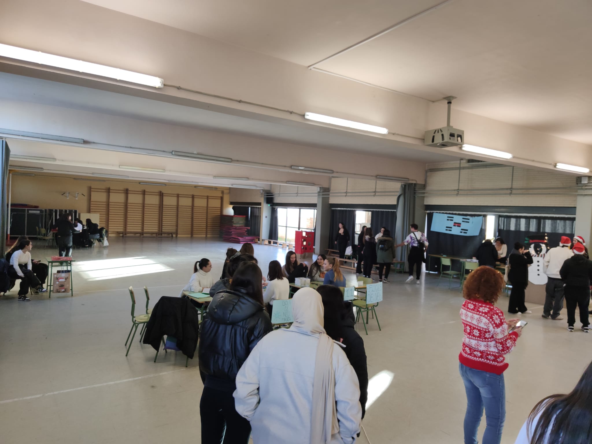 Avui recordem la festa de final de trimestre dels cicles formatius de la tarda. Enguany, l’alumnat de TEI i instal·lacions elèctriques va organitzar una animada fira d’hivern amb una gran varietat de paradetes. Per al berenar, tots vam gaudir d’una deliciosa xocolatada. I com a cloenda, vam ser agraciats amb actuacions especials de cada curs, plenes de missatges de pau i esperança.
