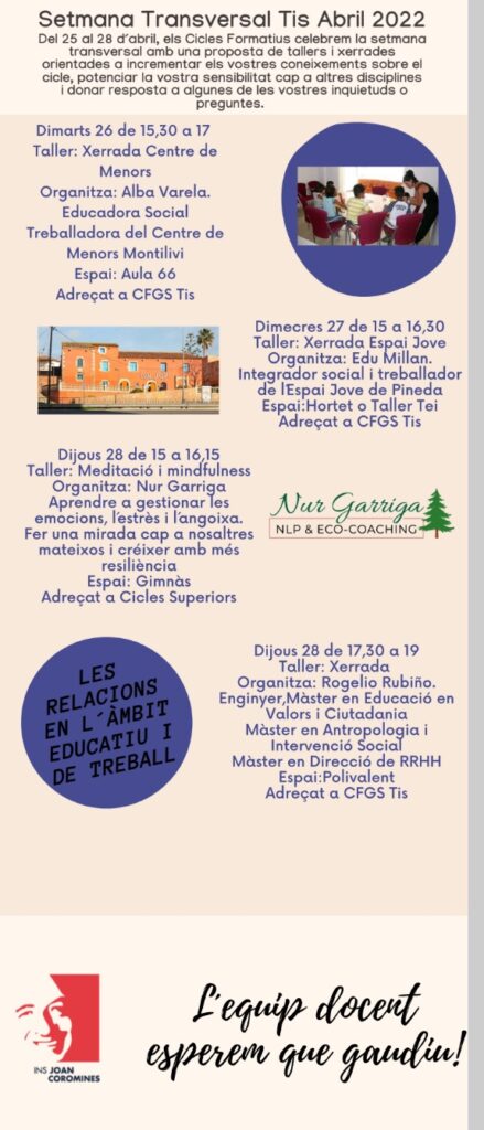 Setmana Transversal a Serveis a la Comunitat Javi Hinojosa03/05/22 Setmana Transversal a Serveis a la Comunitat del 25 al 28 d’abril.