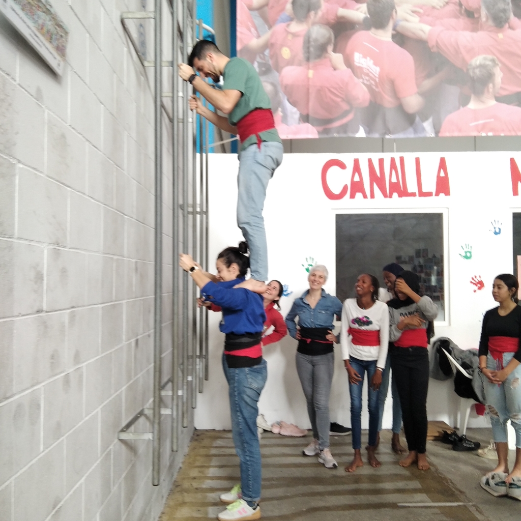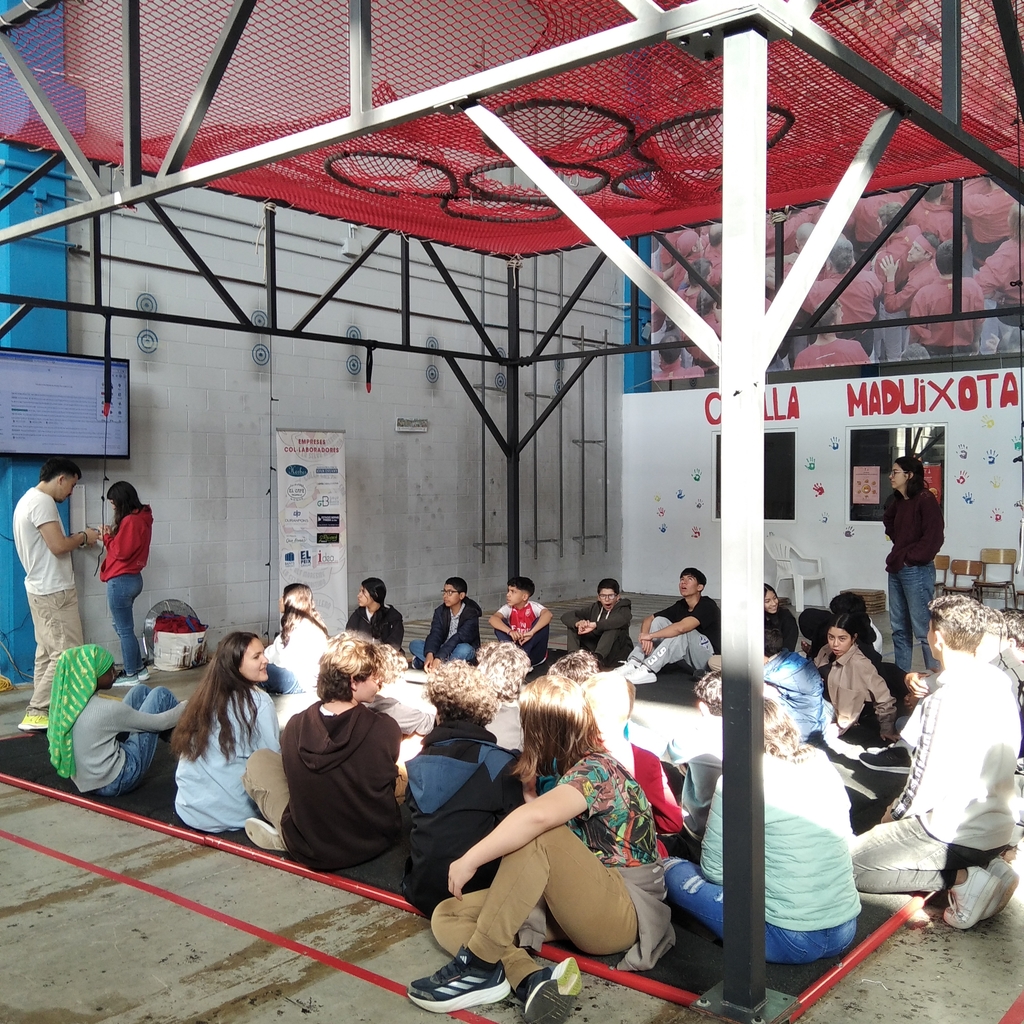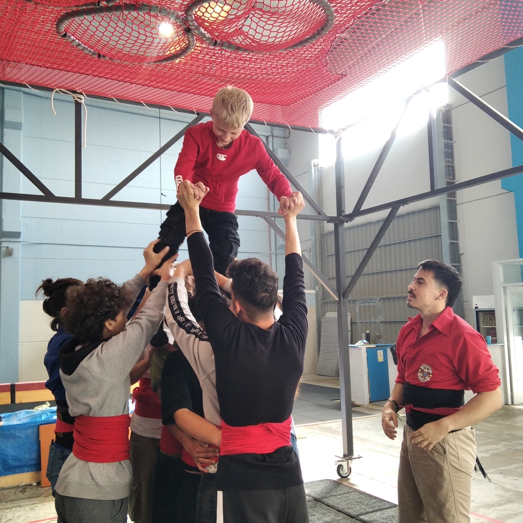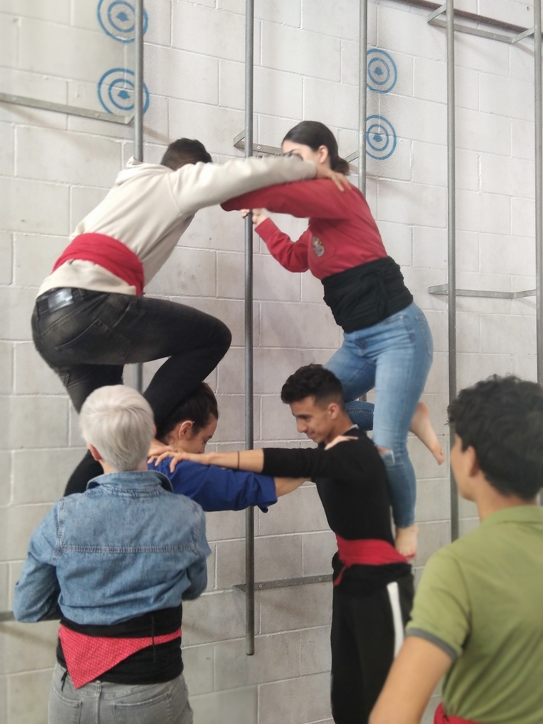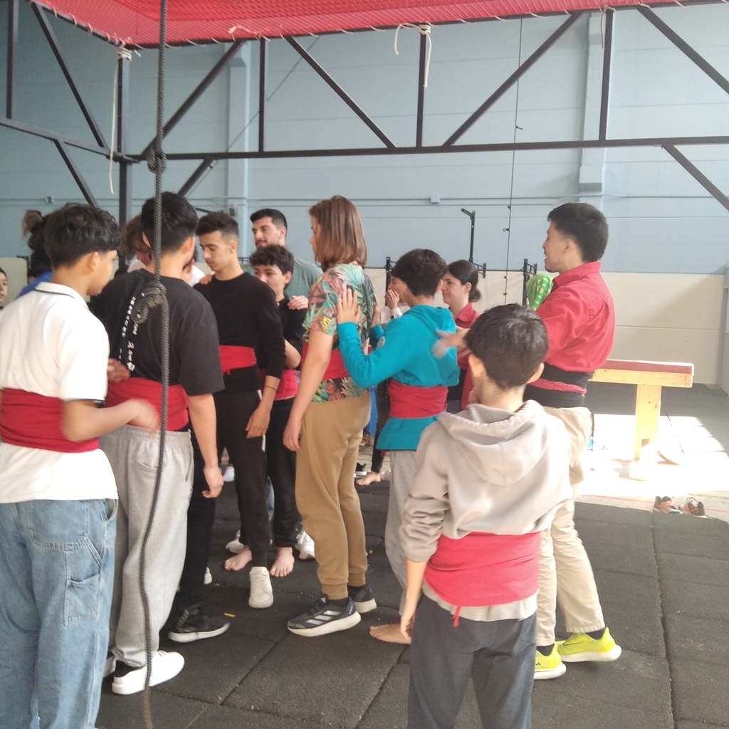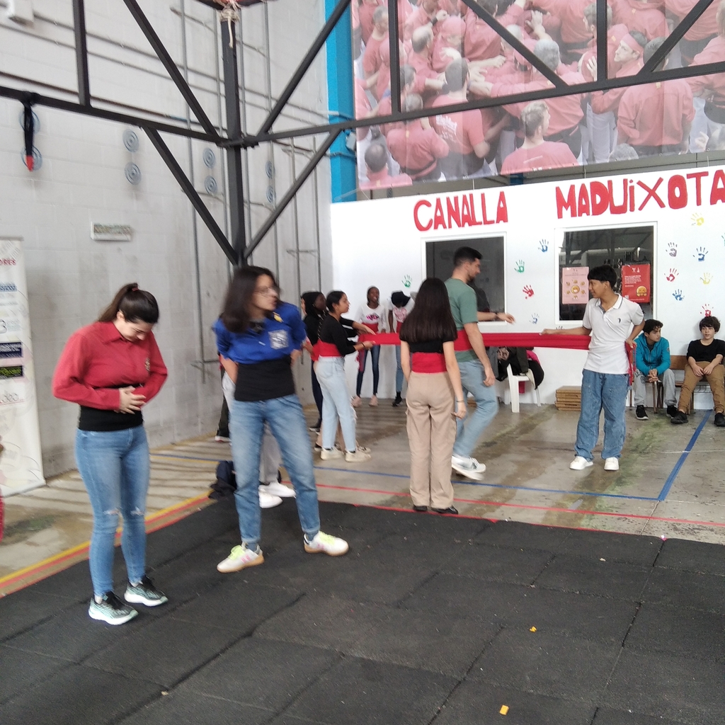 Després de fer una sessió teòrica introductòria sobre el món casteller, l’alumnat va poder vestir-se amb la faixa per practicar i assajar amb el suport dels monitors especialistes.