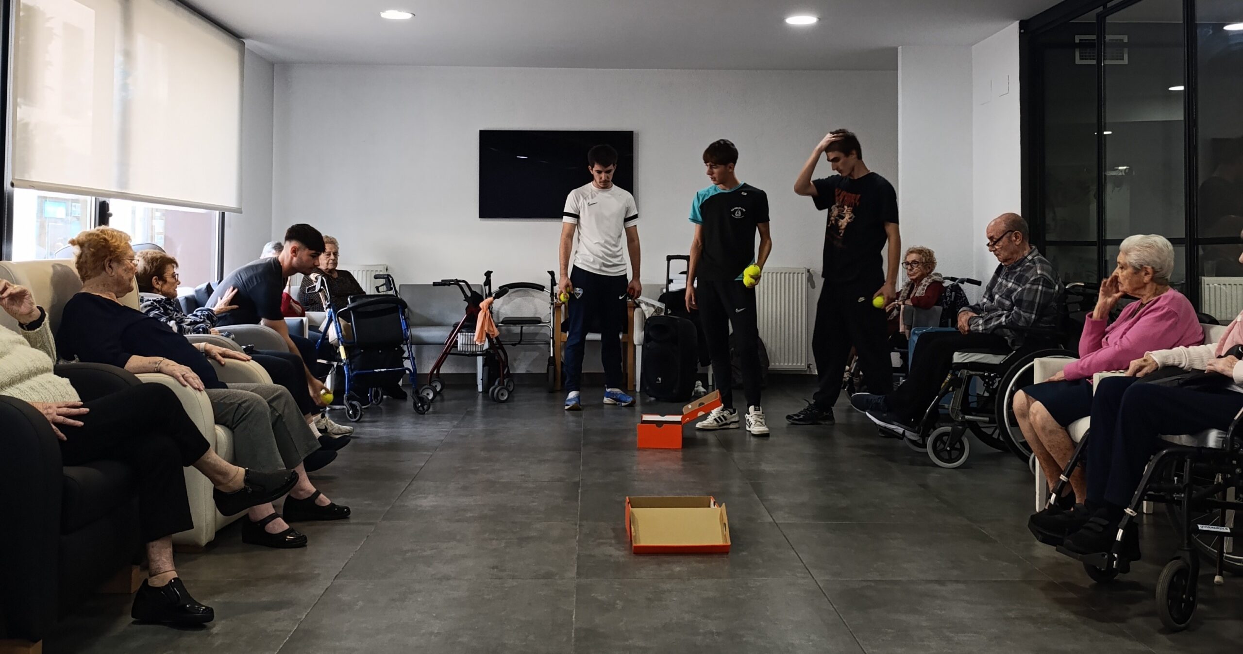 Els estudiants de 1r EAS (Grau Superior en Ensenyament i animació socioesportiva), ha estat a la Residència de Gent gran “Els Arcs” de Pineda, apliquen estratègies d’intervenció socioesportiva mitjançant l’elaboració de diversos tallers divertits de psicomotricitat, cognitius i ball. Ha estat una bonica relació intergeneracional generant vincles emocionals realment enriquidors en tots els sentits. Felicitar els nois i noies per la seva humanitat. CUIDEM A LA GENT GRAN.