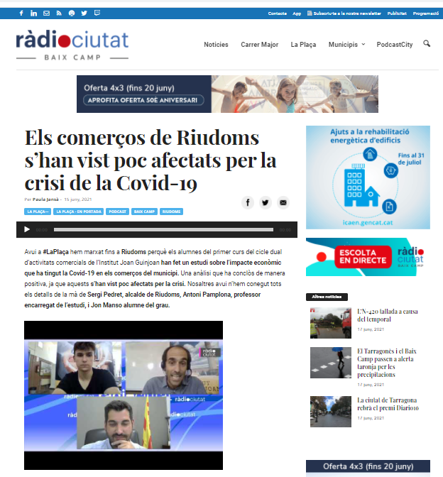 Us adjuntem l’entrevista que ens van fer des de Baix Camp Ràdio per difondre els resultats de l’estudi sobre l’impacte de la COVID 19 als comerços de Riudoms, que van dur a terme els alumnes del CFGM d’Activitats comercials.
