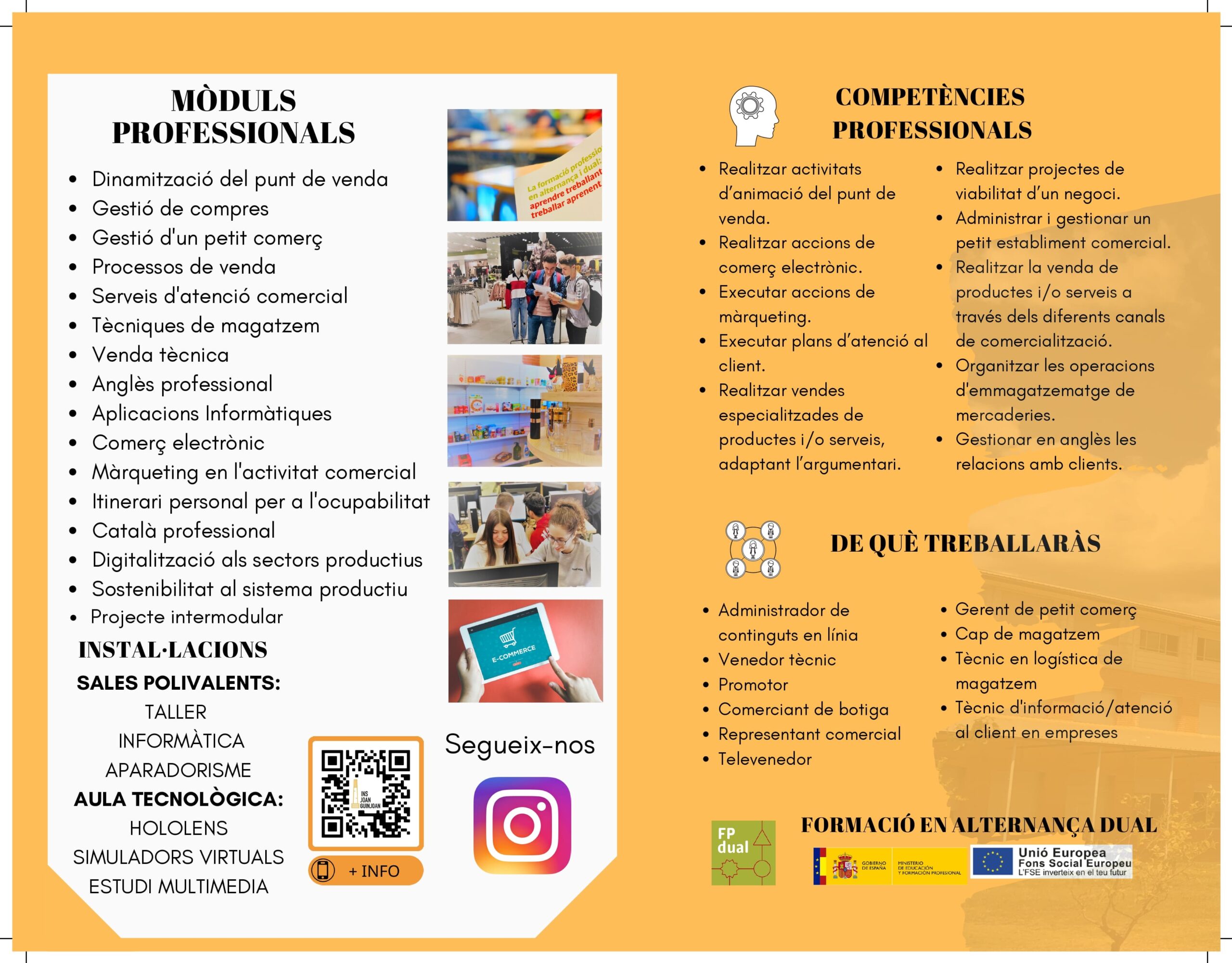 Aquests estudis capaciten per desenvolupar activitats de distribució i comercialització de béns i/o serveis i gestionar un petit establiment comercial, aplicant les normes de qualitat i seguretat establertes i respectant la legislació vigent.