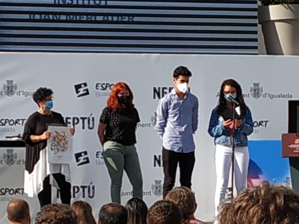 El Yousaf Zeriouh, de 2n de Batx., i la Bruna Tolosa, de 2n d’ESO, van ser els esportistes seleccionats per representar el nostre institut als Premis Neptú. Tots els participants van llegir un missatge per l’any 2050, guardat en la “Càpsula del temps”. Aquest és el missatge que van llegir el Yousaf i la Bruna: “A vegades volem que s’acabi ràpid el partit, altres demanem temps mort i en ocasions voldríem que no s’acabés mai… Després d’aquest parèntesi, esperem tornar a jugar totes les segones parts i pròrrogues. Seguirem avançant, millorant, creixent… valorant tot allò que SOM.”
