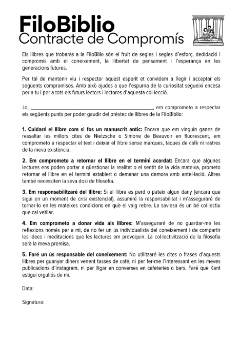 Per poder gaudir d’aquest servei l’alumnat ha de signar un document de compromís on manifesten la seva voluntat de vetllar per aquest bé tant preuat, els llibres.