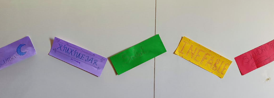 D’aquesta manera,els passadissos de tots els nivells d’ESO han estat guarnits amb paraules escrites en català, castellà, romanès, àrab clàssic, amazic, anglès, francès, italià, entre d’altres, que són les llengües que parlen els i les alumnes del centre.