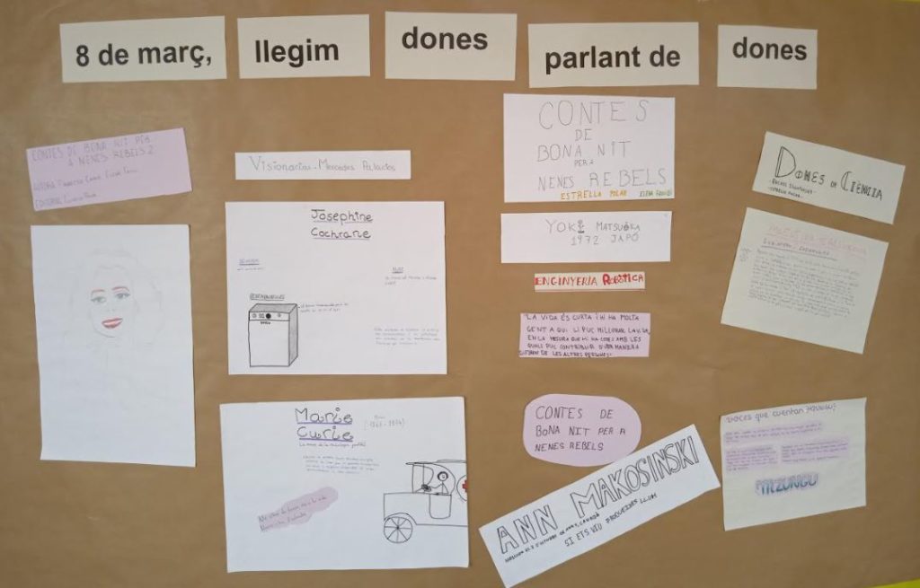 Cada grup hem triat una dona i hem fet un mural col·laboratiu que hem penjat al “Racó del Lectura” del vestíbul.