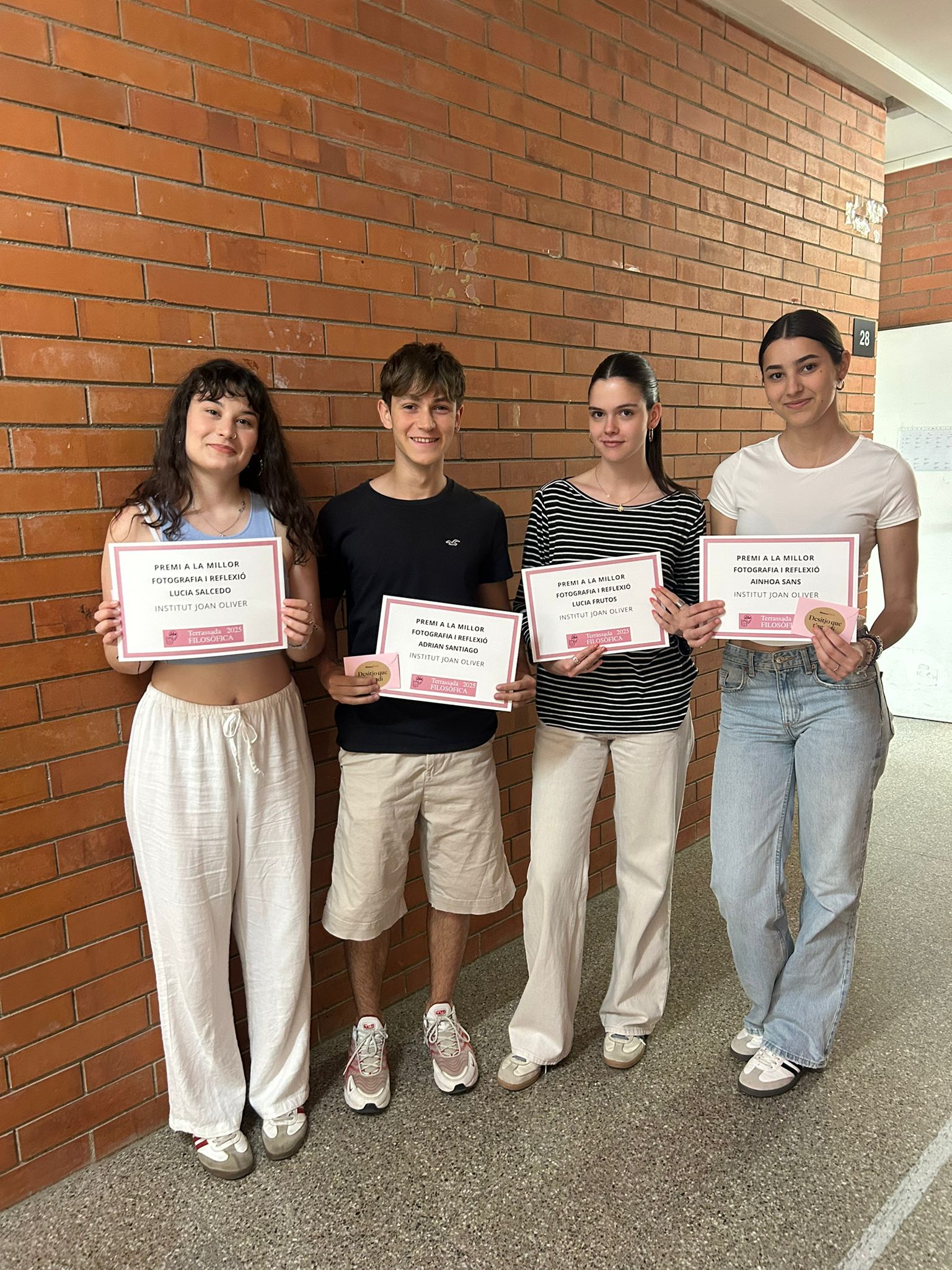 El passat 21 de febrer de 2025 els alumnes de 2n de batxillerat van participar en la Terrassada filosòfica, un dels grups formats Lucia Salcedo, Adrian Santiago, Lucia Frutos i Ainhoa Sans han guanyat el premi a la millor fotografia i reflexió. Enhorabona.