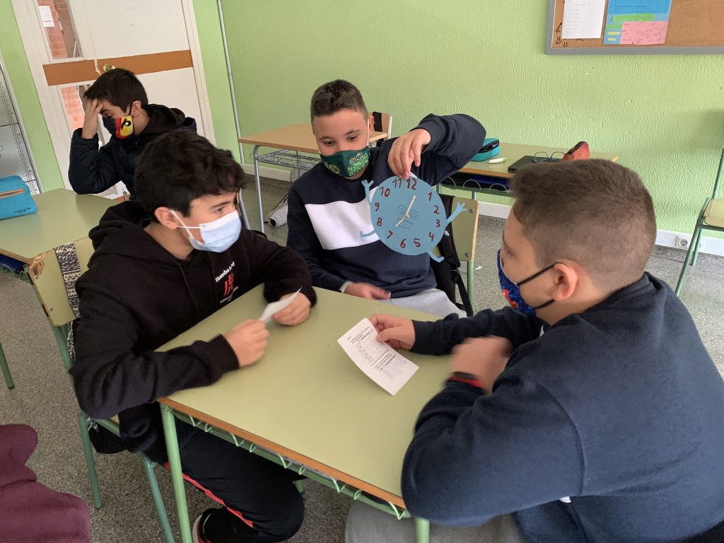 L’alumnat de 1rD ens vol compartir imatges d’una sessió que els va agradar molt. Es tracta d’una activitat oral on van practicar les hores i les rutines en anglès utilitzant uns rellotges de cartolina que van fer ells mateixos . Més fotos
