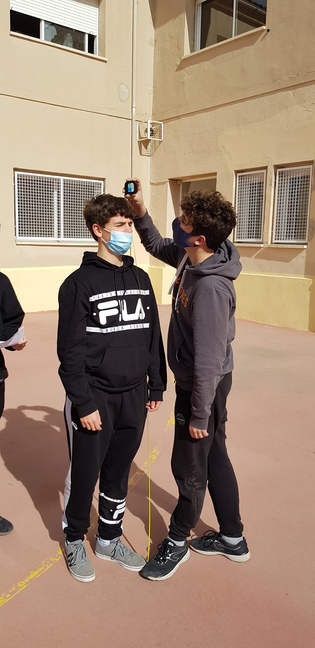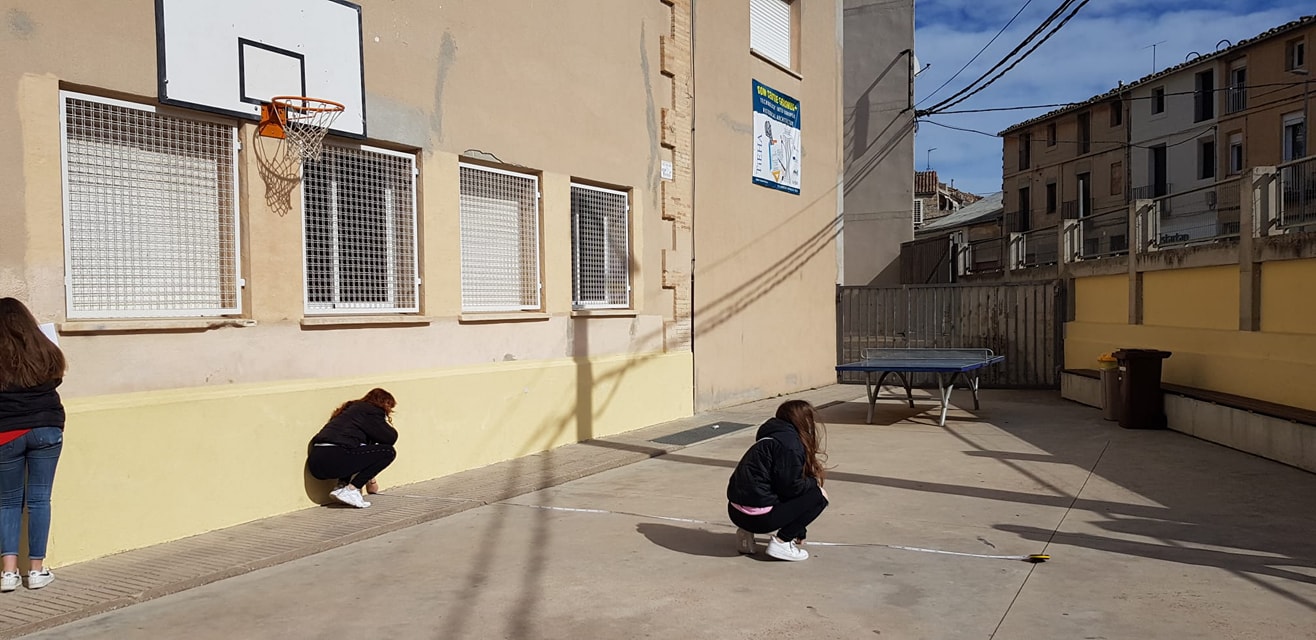Aprenem trigonometria al pati Feu un comentari / Per David Melero / 09/03/2022 / General Les mates es poden fer servir! A matemàtiques, els alumnes de 4t prenen l’alçada de la cistella i l’edifici de l’institut sense moure’s del terra de l’insti! #viscalatrigonometria