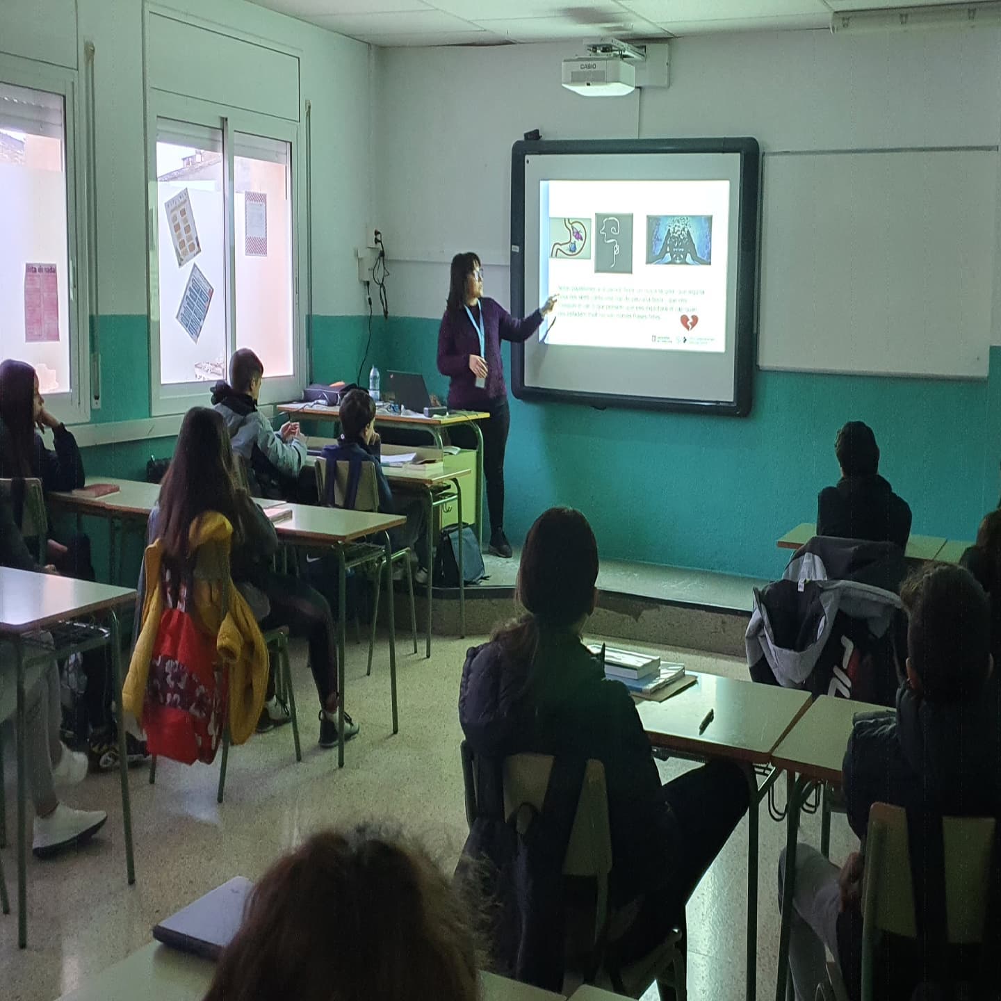 Volem agrair al personal del CAP de Santa Coloma, que ens fa unes xerrades molt interessants sobre salut. En aquest cas, l’Anna, ens ha parlat dels estats d’ànim a 2nB. A vegades els exàmens, la feina, les emocions, l’estrès es barregen i poden crear-nos certa inestabilitat emocional. L’Anna ens ha parlat de tot això!