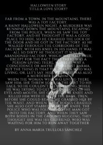 L’alumnat de 2n d’ESO escriu històries sobre Halloween en anglès Feu un comentari / Per David Melero / 02/11/2021 / General L’alumnat de 2n d’ESO va escriure algunes històries de por en anglès inspirades per la seva professora, Eva Lozano. Us compartim alguns dels muntatges preparats.